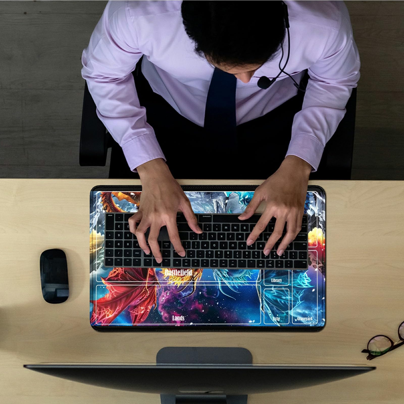 RWUTYTIUL Flaming Dragon Card Playmat 24 X 14 Inch with Tube Bag, Card Gameplay Board with Zones Commander Deck MTG RPG CCG TCG