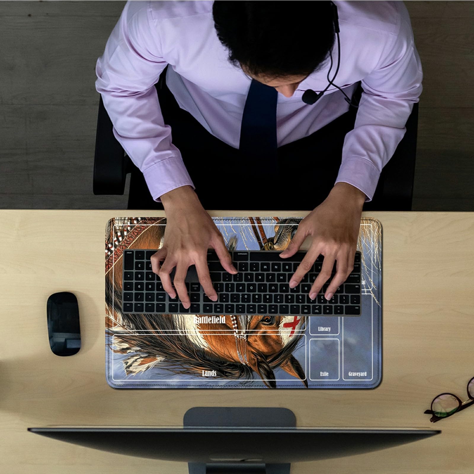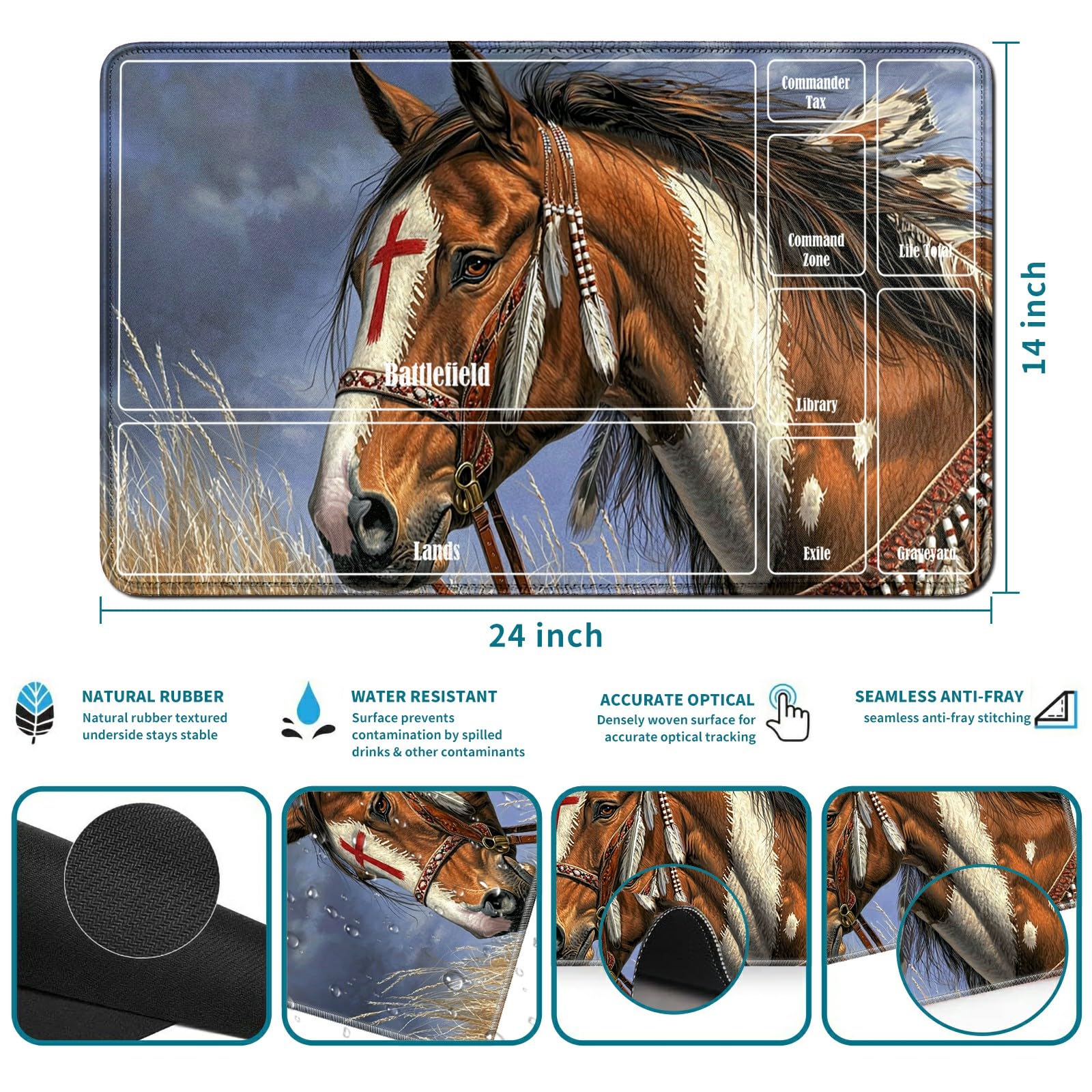 Rwutytiul Gray Sky Horse Card Playmat 24 X 14 Inch With Tube Bag, Card Gameplay Desk Mat With Zones Commander Deck Board Mtg Rpg