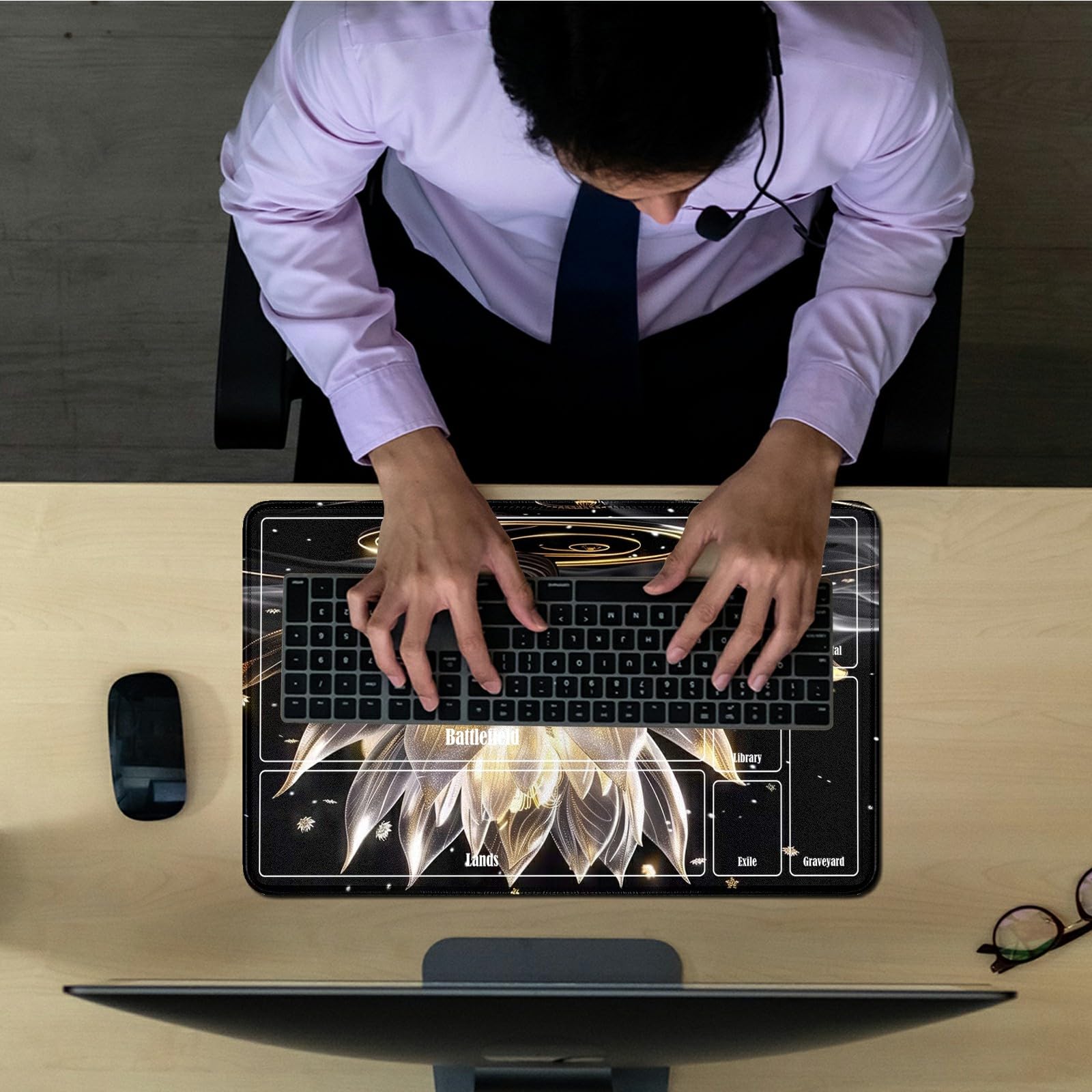 Rwutytiul Lotus Card Playmat 24 X 14 Inch With Tube Bag, Card Gameplay Mat With Zones Commander Deck Board Mtg Rpg Ccg Tcg Card