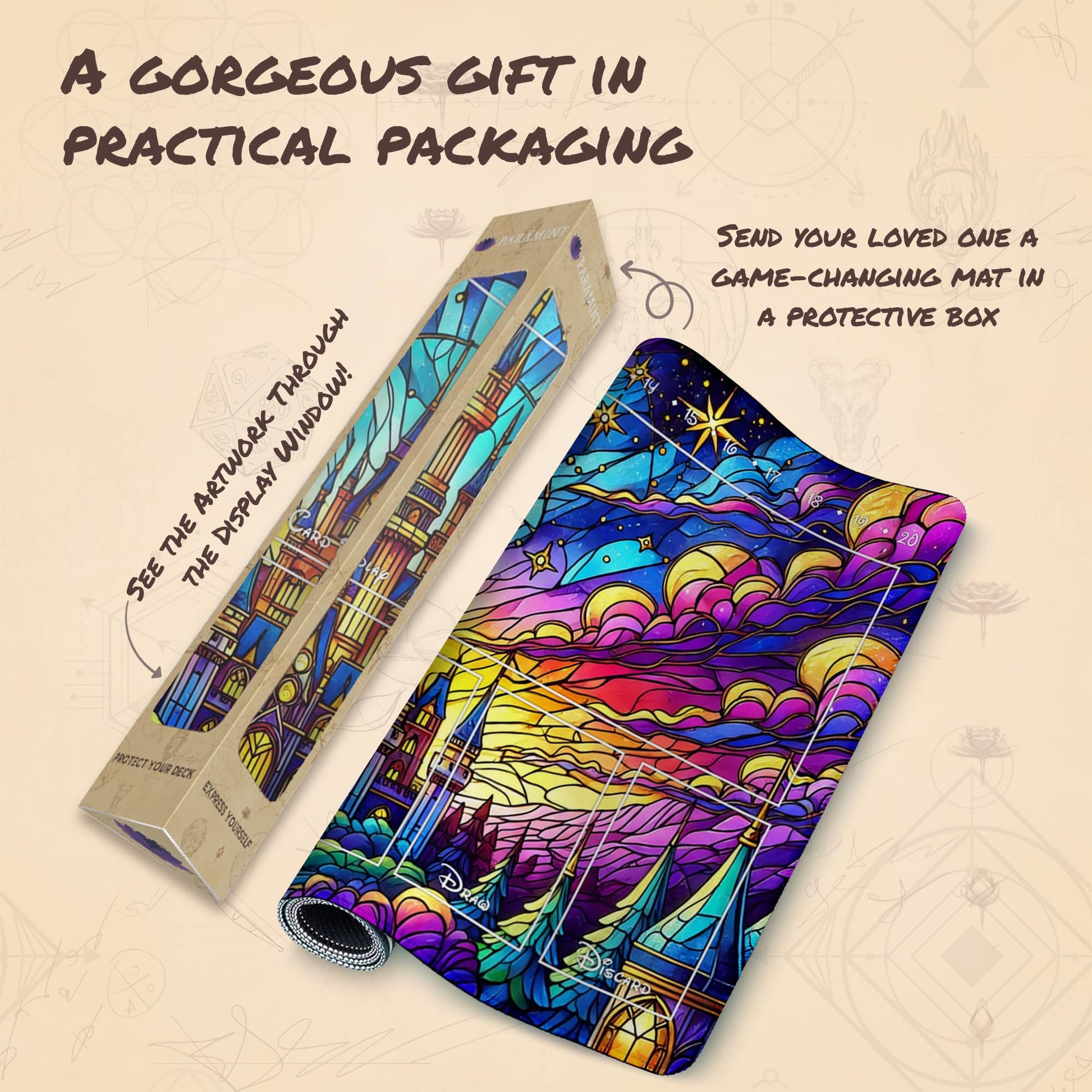 Wizcraft Gaming Paramint Lorcana Stained Glass Castle (Stitched) - Lorcana Playmat - Lorcana Mat, Lorcana Game Mat - Non-Slip Ru