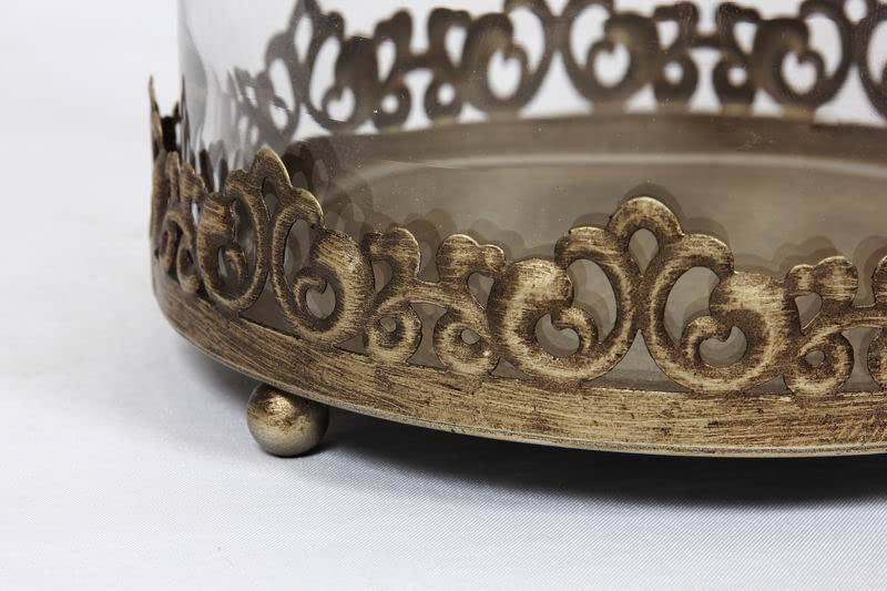 - Q: What materials are used in the construction of the cloche dome? A: The cloche dome is made from thick, sturdy glass, and features a decorative filigree metal base finished in champagne gold.