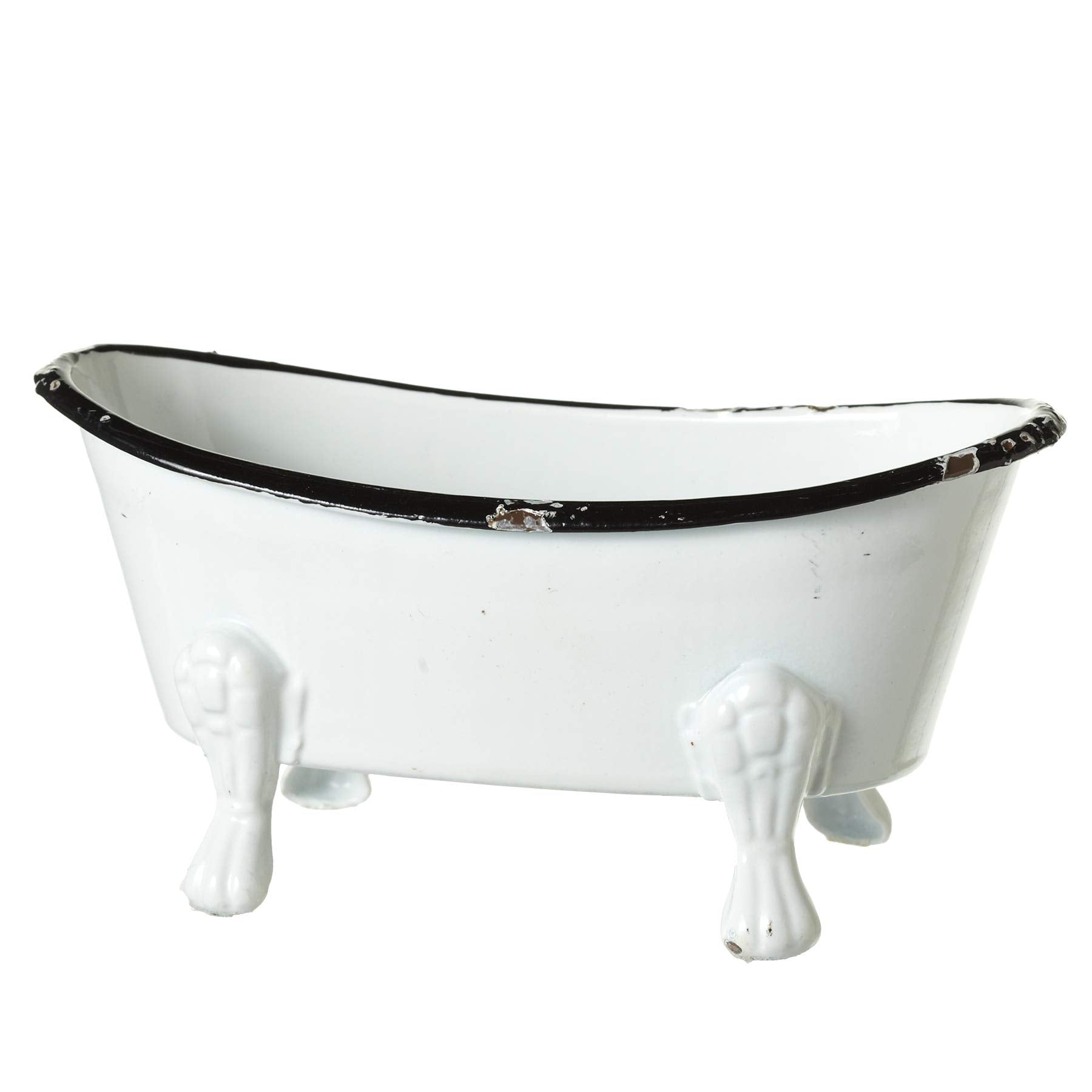 This Black And White Bathtub Enamelware Soap Or Scrubby Holder Looks Great In Any Kitchen Or Bathroom. A Rustic, Distressed Finish Gives It That Highly-Desired Aged Look. Its Versatile Black And White Colors Look Good With All Other Colors Of Decor. Use It To Hold Soap Or A Scrubby In Chic Farmhouse Style.