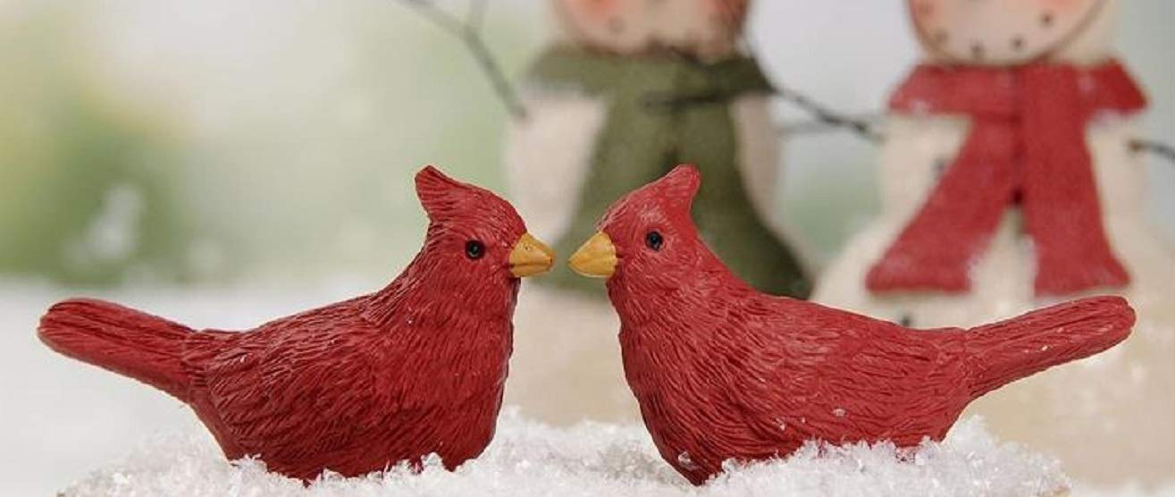 Blossom Bucket Set Of 2 Mini Red Birds-Cardinals