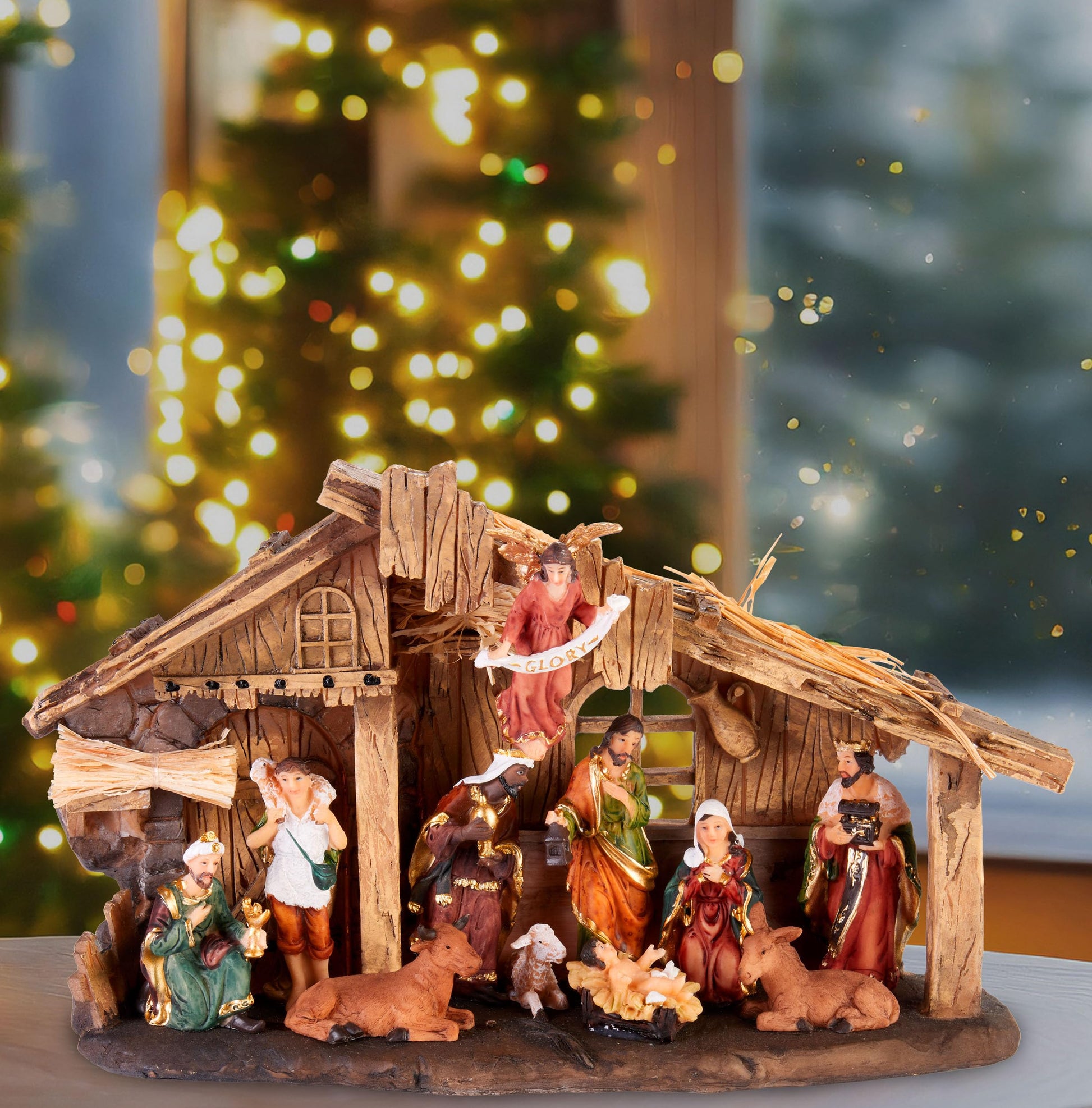 Brubaker Christmas Real Life Nativity Scene Set - Holiday Decoration - Stable With 11 Resin Figurines (Not Re-Arrangeable) - Designed In Germany