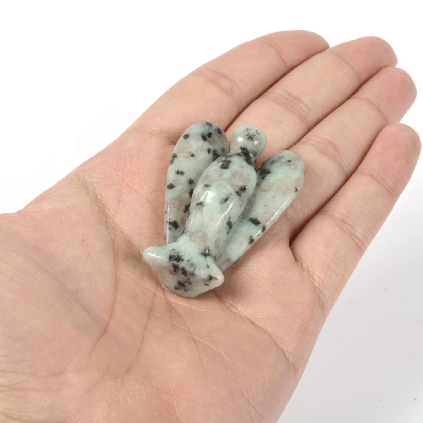 - Q: What is the size of the Carved Kiwi Jasper Peace Angel? A: The Carved Kiwi Jasper Peace Angel is approximately 2 inches tall, with dimensions of about 50mm x 32mm x 18mm.