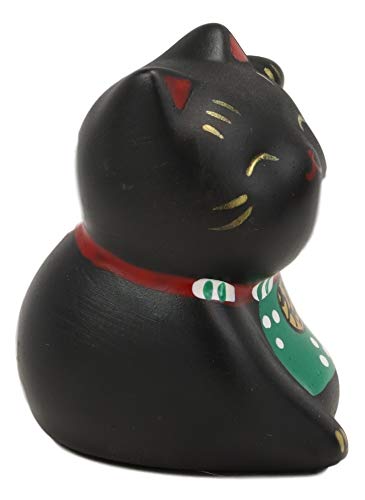 Ebros Japanese Good Luck And Fortune Charm Beckoning Cat Maneki Neko With Baby Bib Miniature Ceramic Figurine 2.5' Tall Welcoming Lucky Cats Symbol (Black Maneki Neko)