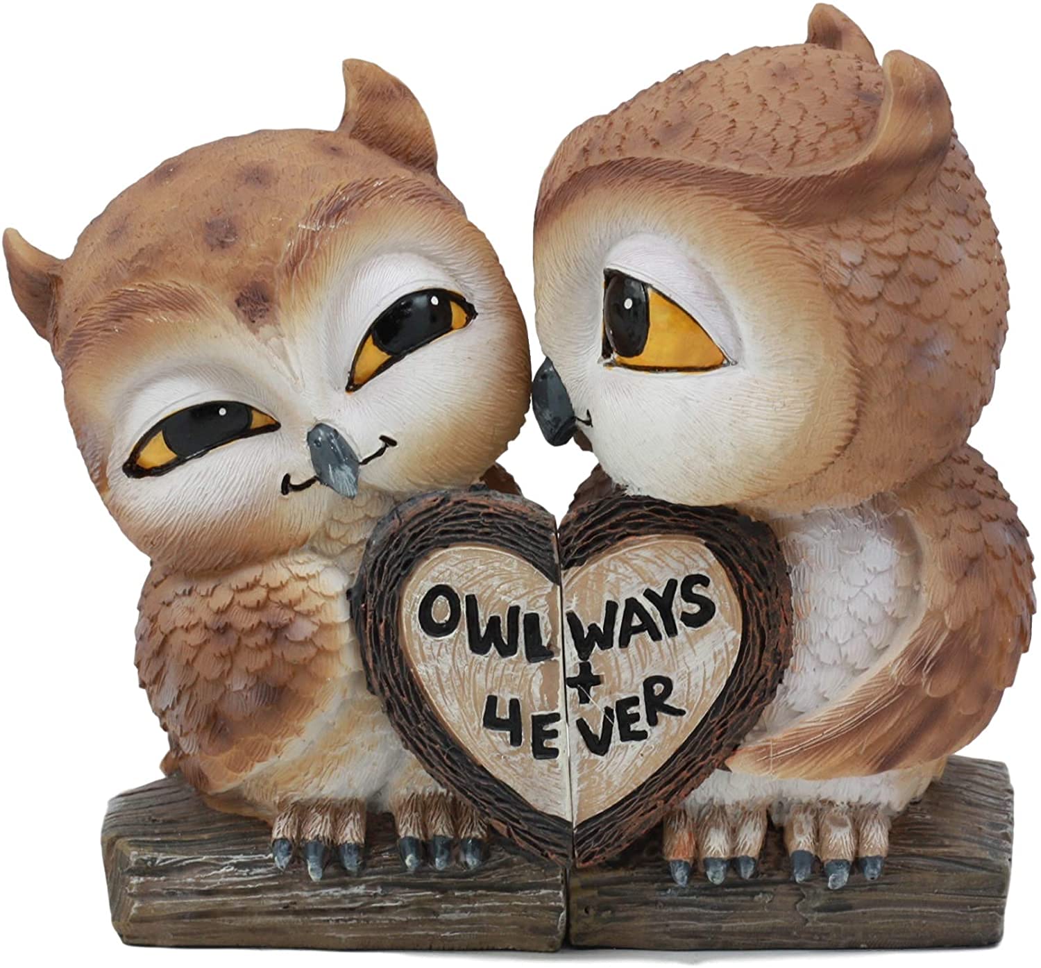 Ebros Romantic Kissing Love Owl Couple Decor Statue 2 Piece Set Decorative Figurine Valentines Birds Pair Of Owls Holding Heart Shaped Sign Saying Owlways 4Ever