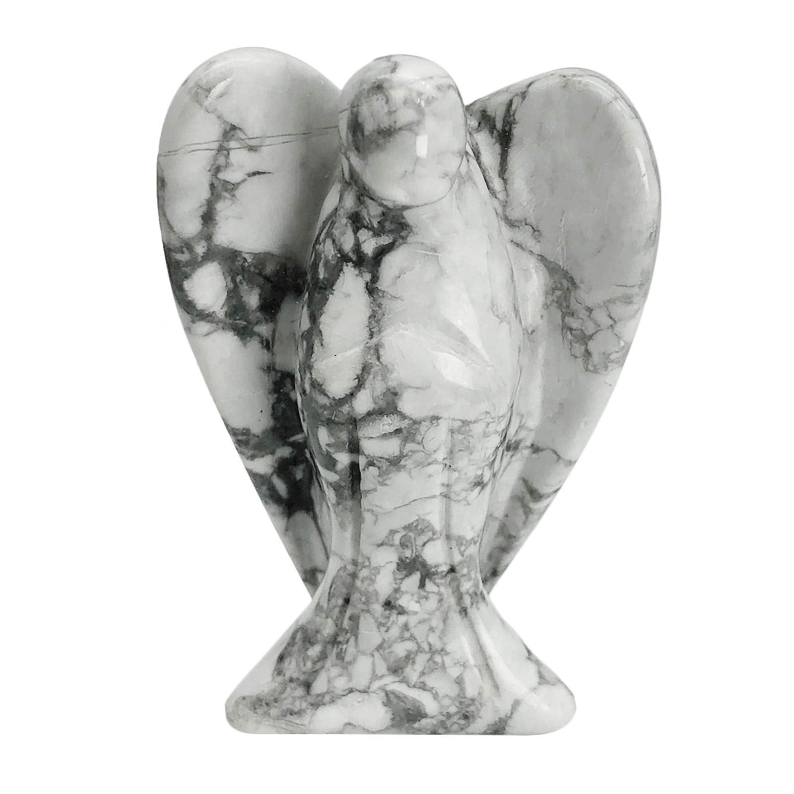 - Q: What is the size of the Fekuar Natural White Howlite Turquoise Guardian Angel Statue? A: The Fekuar Guardian Angel Statue measures approximately 2 inches (51-54mm) tall and 1.2 to 1.4 inches (32-36mm) wide, with a thickness of 0.5 to 0.8 inches (15-18mm).
