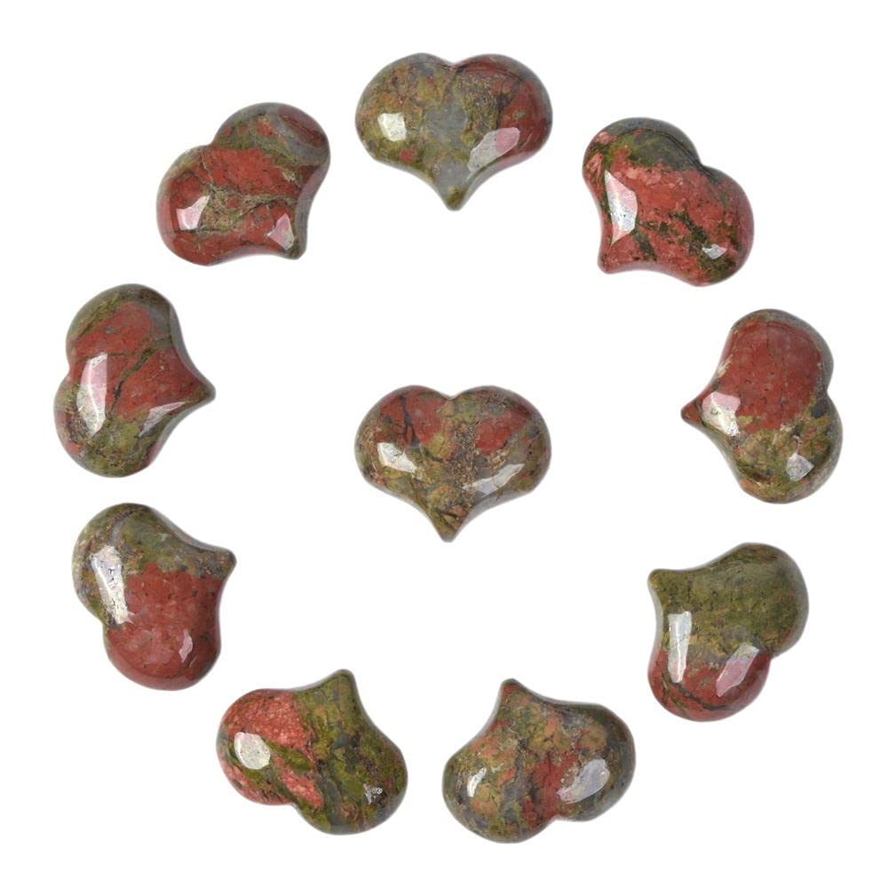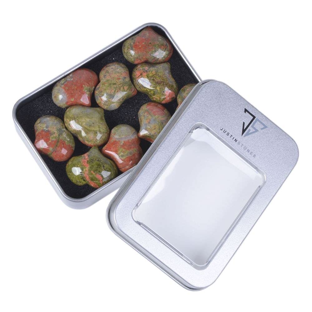 Justinstones Natural Unakite Gemstone Healing Crystal 1 Inch Mini Puffy Heart Pocket Stone Iron Gift Box (Pack Of 10)