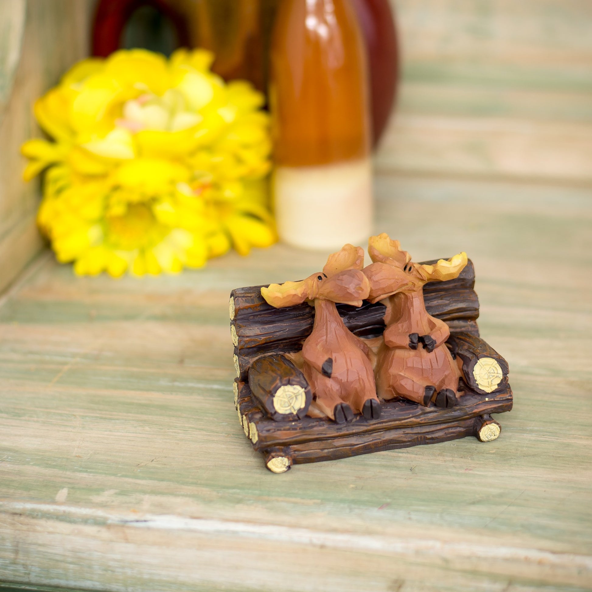 Slifka Sales Company Kissing Moose On Bench 5 X 3 X 3 Inch Resin Crafted Tabletop Figurine
