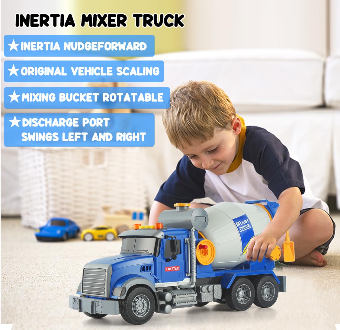 ANJARU Big Cement Mixer Truck Toys Engineering car Lights Sounds,Friction Powered Push car,Go Construction Vehicles Toddlers Boy