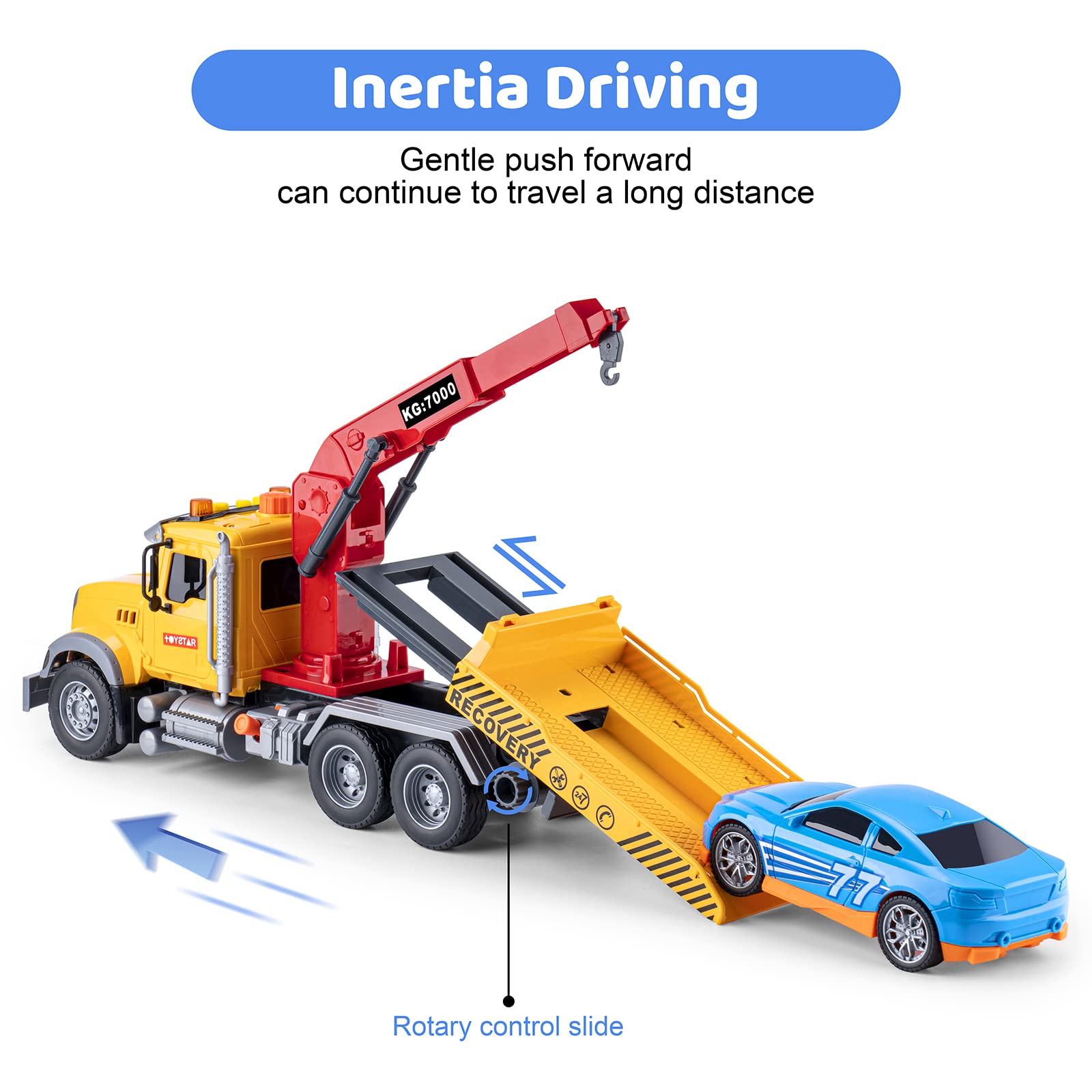 - Q: How does the friction-powered mechanism work on this toy truck? A: The friction-powered mechanism allows the truck to move forward or backward when pushed, utilizing powerful propulsion to keep it moving without the need for batteries.