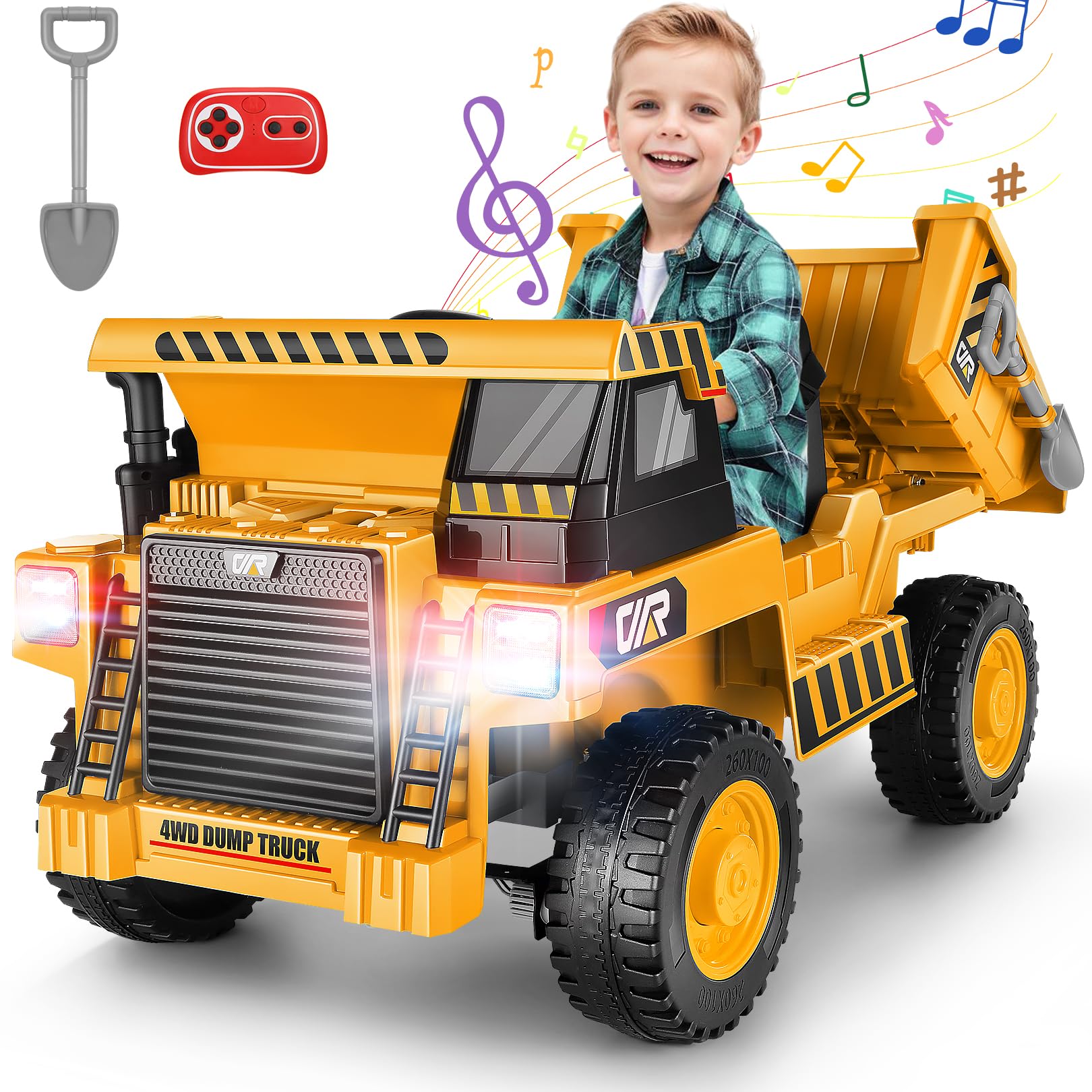 View compareHikole Ride On Dump Truck For Kids, Electric Cars With Remote Control, Dump Bed, Shovel, Bluetooth, Music Player, Ride On Construction Vehicles For Kids 4-8, Yellow