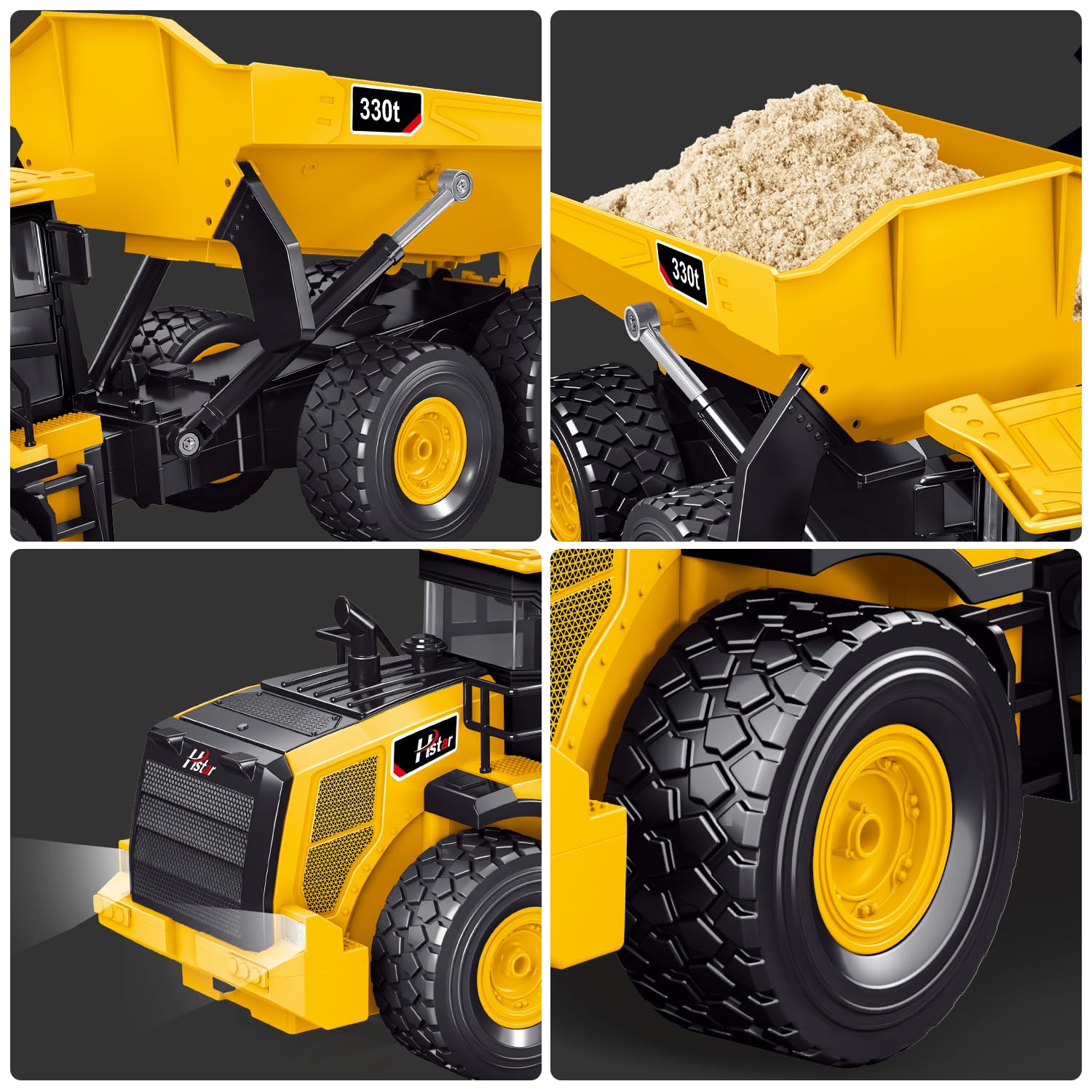 Leopmase RC Dump Truck, Remote Control Dump Truck 11 Channel with Lights/Sounds/2 Batteries for Adults, RC Construction Vehicles