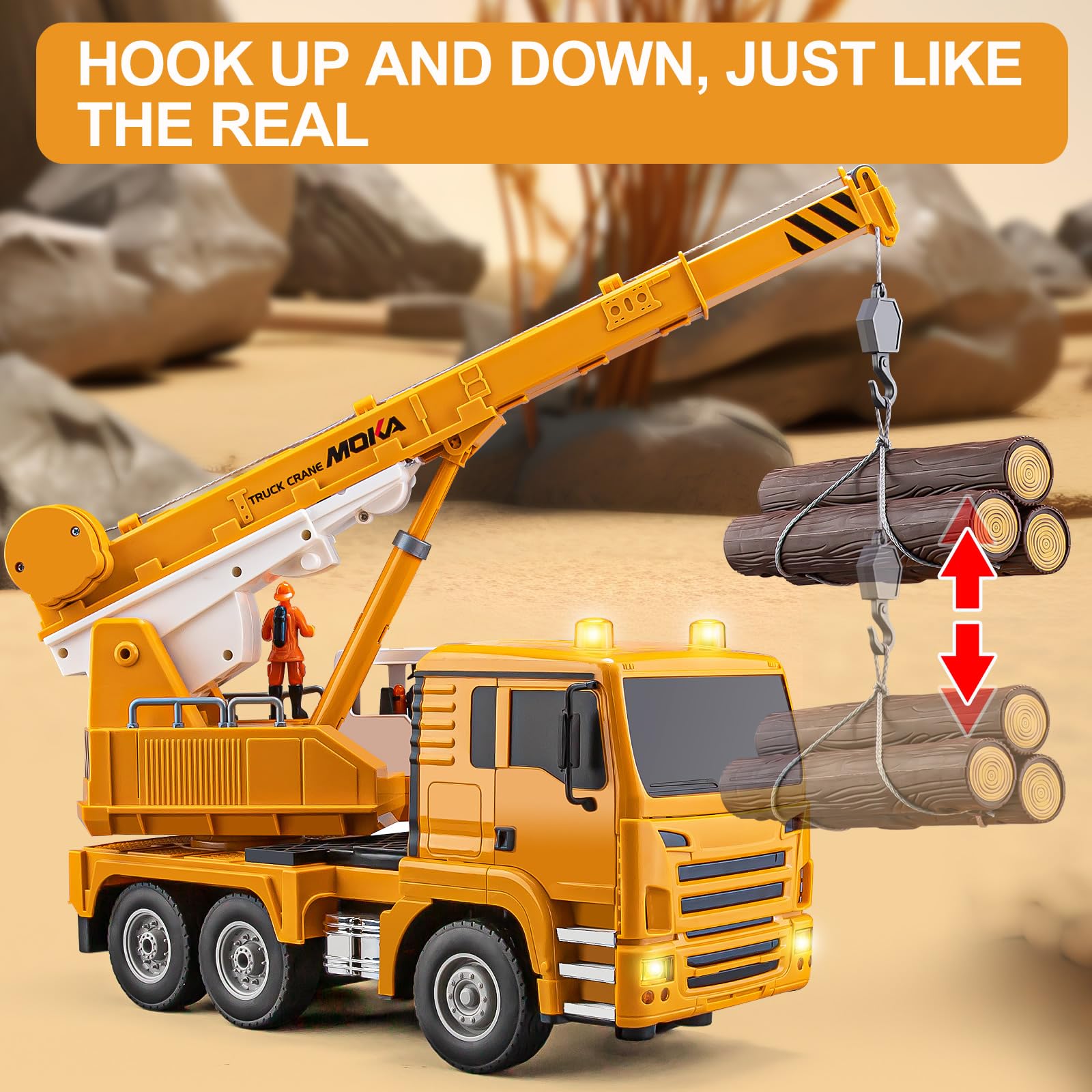 WEMOKA 13 Channel RC Crane Truck, 2.4G Remote Control Crane Toy Construction Vehicles with Lights, Sounds, Hook Up and Down, 1:1