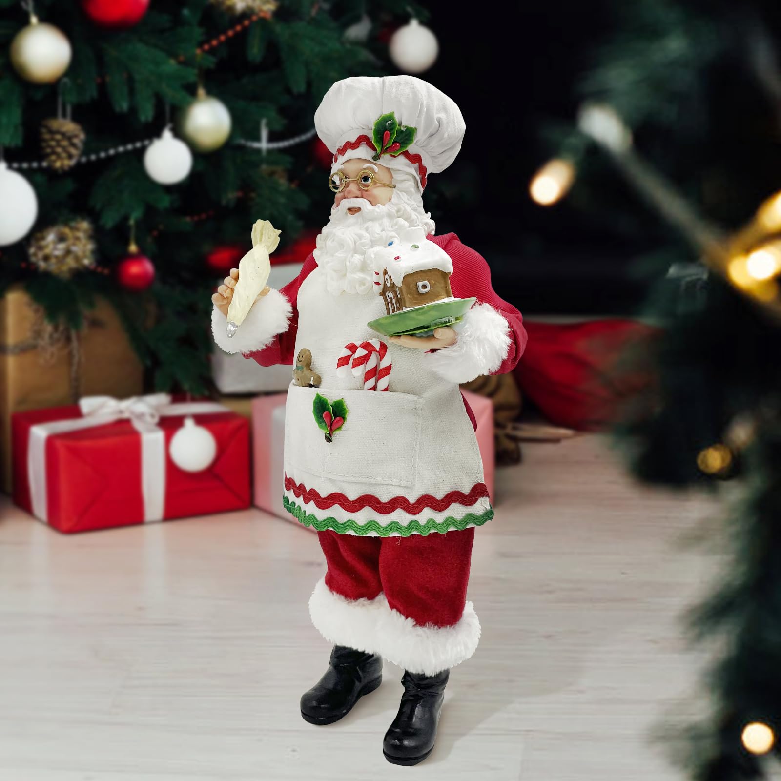 Amyoxu 11-Inch Cooking Chef Santa With Gingerbread House,Resin Statue Santa Figurine Christmas Decoration Ornament Xmas Gift