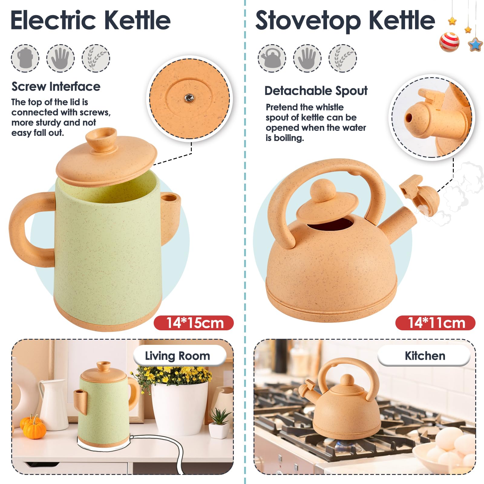 Kitchen Pretend Play Toys - 13 PCS kitchen toy included 3 set Pots and Pans, 1 Kettle, 1 Teapot, 6 pieces Kitchen Cooking Utensils, 1 Egg, 1 Cutting Board. Full accessories give children a better gaming experience. Realistic Toy Kitchen Accessories - The cookware toy comes with realistic shapes, lids that can be opened, handles for support and a variety of utensils to hang to make this toy like the real. Let children fall in love with cooking. High Quality - Made of high quality plastic materials, durable. Reusable and easy to clean. NOTE: Do not put hot water into the toddler kitchen set. Recommended for children over 3 years old. Role Play Game - Kids can pretend to cook with pots and pans to prepare hearty meals for family or friends. Role play as a little chef. Gifts for 3 4 5 Years Old - Not only a role play game but also an educational toys. Exercise children's imagination, hand-eye coordination, etc. An ideal gifts for 3 4 5 years old kids/boys/girls/toddler.
