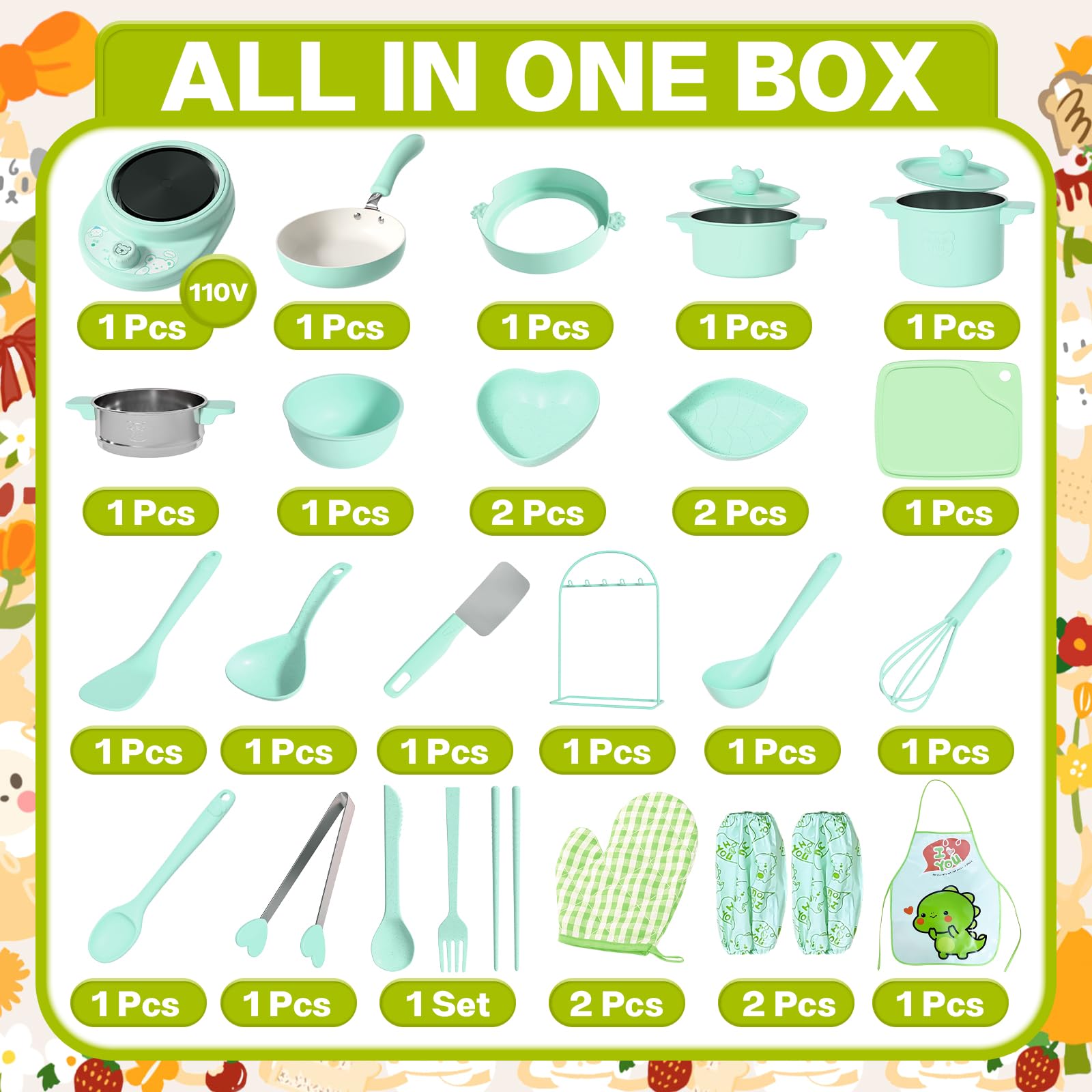 Cicicooie Kid Cooking Set Real Safe Easy Montessori Kitchen Tools, Utensils Includes Stove Burner Aprons Cooking Tool Etc For Re