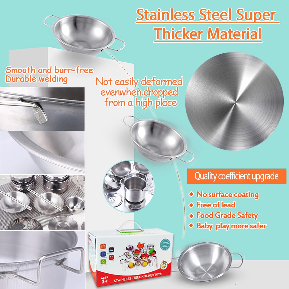 Classic Stainless Steel Kitchen Toys Cooking Utensils Set-Pretend Play Pots Pans Toy Cookware Kits for Kids Cooking Utensil Set