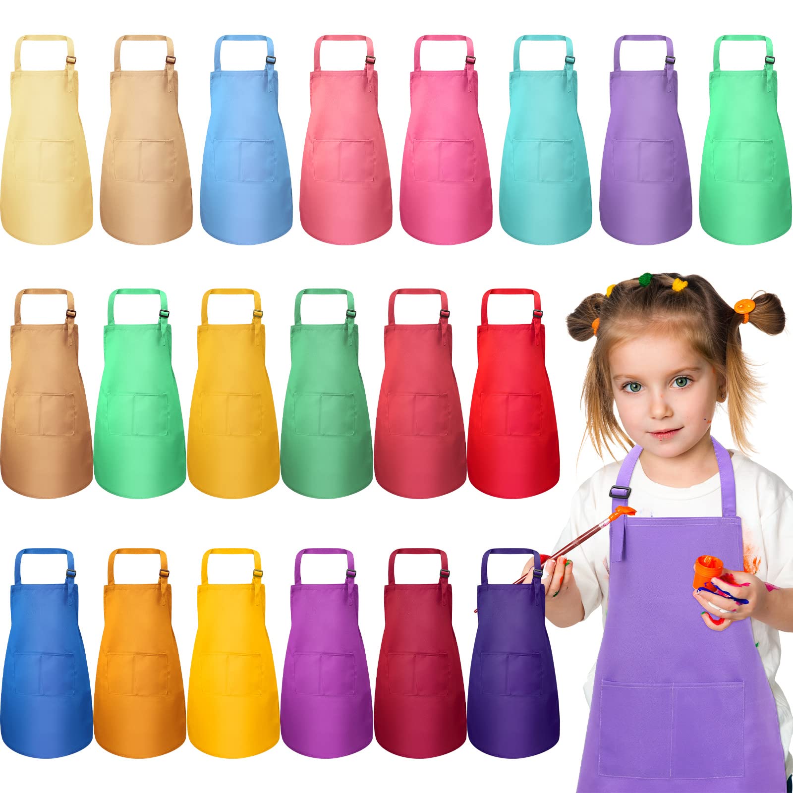Features: Thoughtful Gift Option: You Can Give These Children Chef Aprons As A Gift To Your Child, Or Your Friend Or Colleague'S Child, To Convey Your Care And Love. Pocket Design: They Are Very Convenient To Store While Cooking Or Painting And Prevent Forgetting Things When The Children Finish The Activity. Specifications: Material: Polyester Color: As Shown Size: Approx 18.1 X 24.4 Inches/ 46 X 62 Cm Package Includes: 20 X Kids Aprons With Pocket Notes: Manual Measurement, Please Allow Slight Errors On Size. The Color May Exist A Slight Difference Due To Different Screen Displays. Winding Risk May Exist, Please Keep Away From Little Kids.