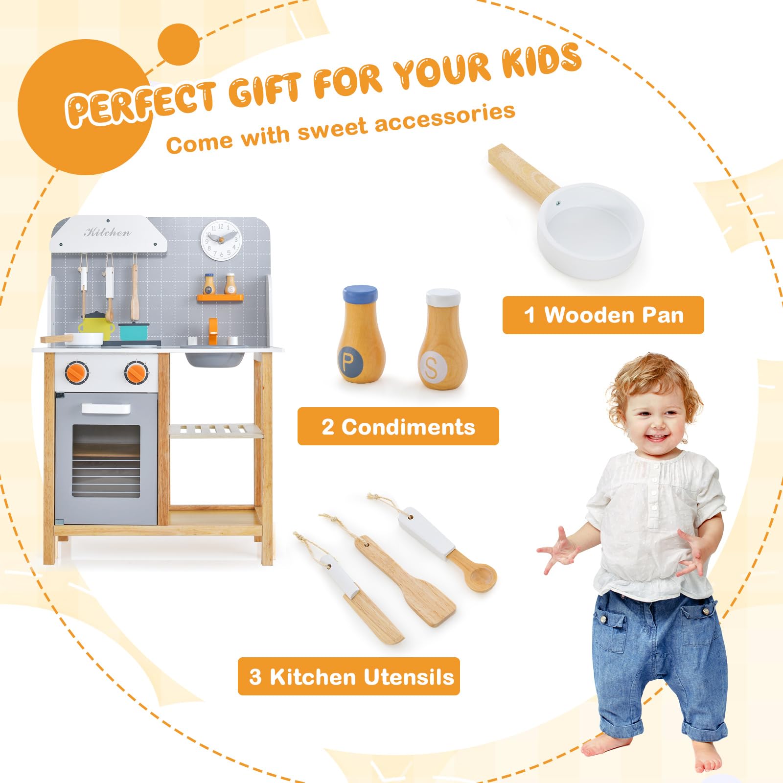 View compareHONEY JOY Kids Kitchen Playset, Toddler Wooden Play Kitchen Set w/Sink, Stove & Oven, Cooking Accessories, Large Storage Cabinet