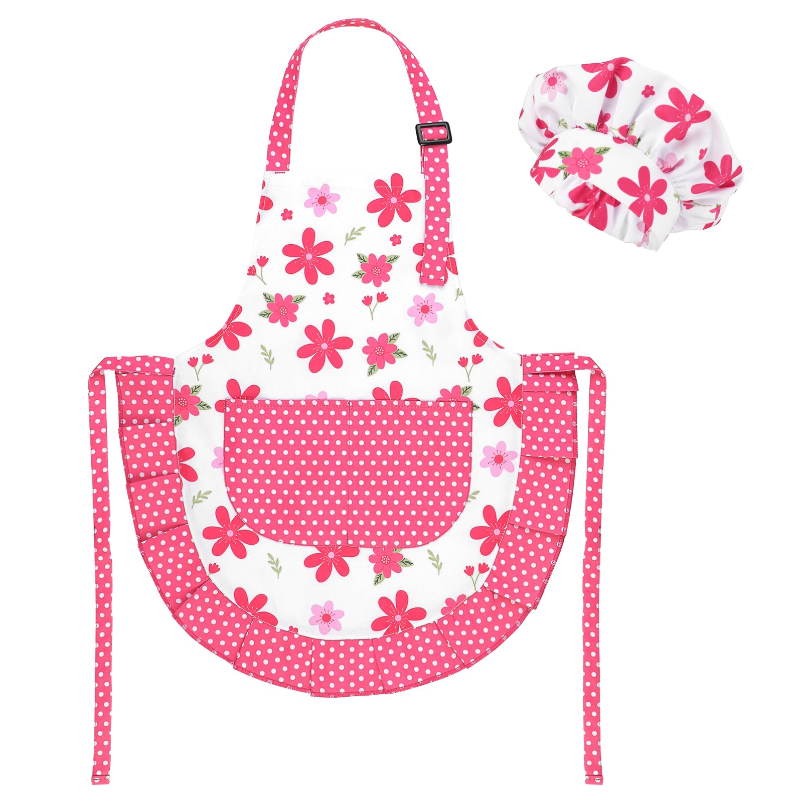 View compareKids Apron And Chef Hat Set, Cute Pink Flower Apron Adjustable Kids Aprons With 2 Pockets, Kids Cooking Aprons Artist Aprons Kit