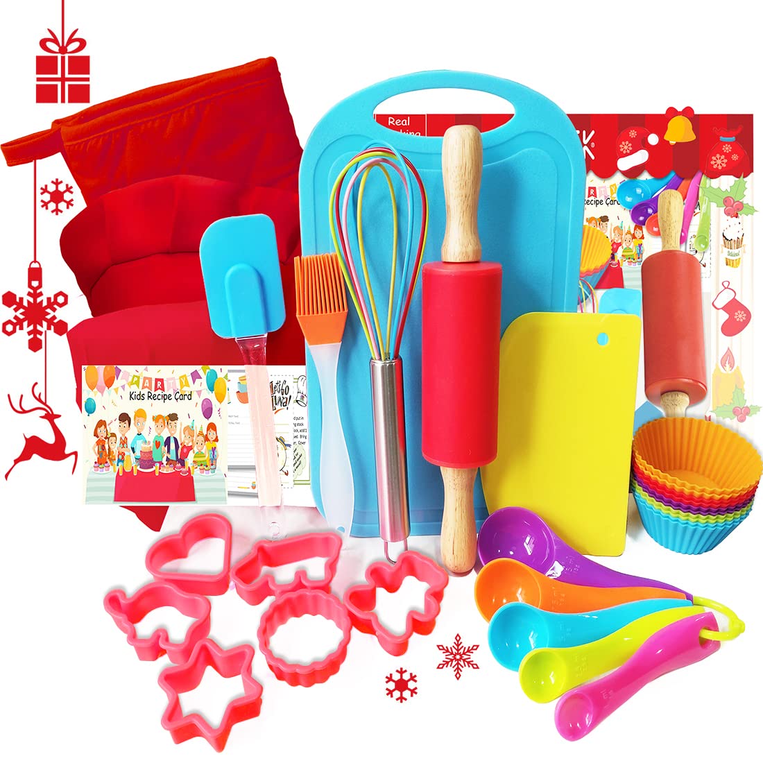 Kids Baking Set Real Cooking Kit Supplies with Kids Apron, Chef Hat, Oven Mitt, Recipes and Kitchen Accessories Tools for Toddle