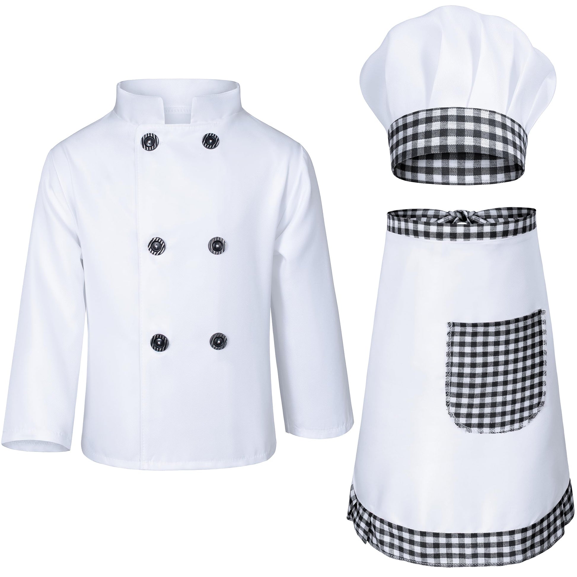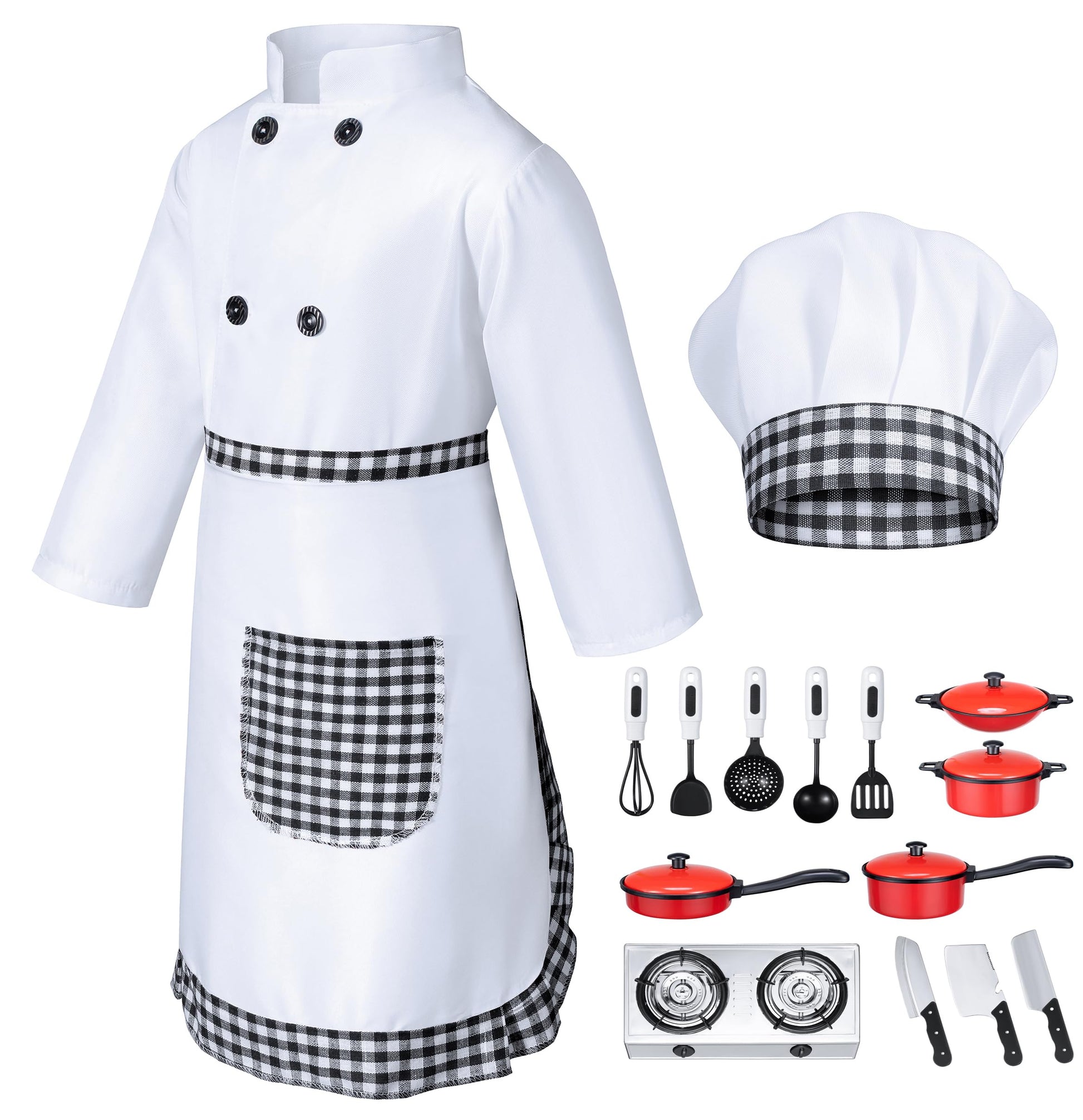 ?16PC Set?:Chef top, Apron, Hat, and 13-piece Role Play Kits(Reference picture). | ?Feature?:Children's Chef Perfect Kits Set, making your child a real chef. | ?Material?:The uniform is made of breathable high-quality polyester, durable, non-fading, and non-deforming. Toy Kits set is made from eco-friendly materials. | ?Size?:Suitable for children aged 3-10 Years,For details, Referencer the Size Chart. | ?Occasion?:Suit for chef Cosplay, kitchen cooking baking party costume, School Party, Birthday,Halloween , Christmas cospaly, Carnival,Trick or Treat costume,Dress up, Easter,role-playing, dance recital party,stage,school show, photo prop, events, and everyday fun.