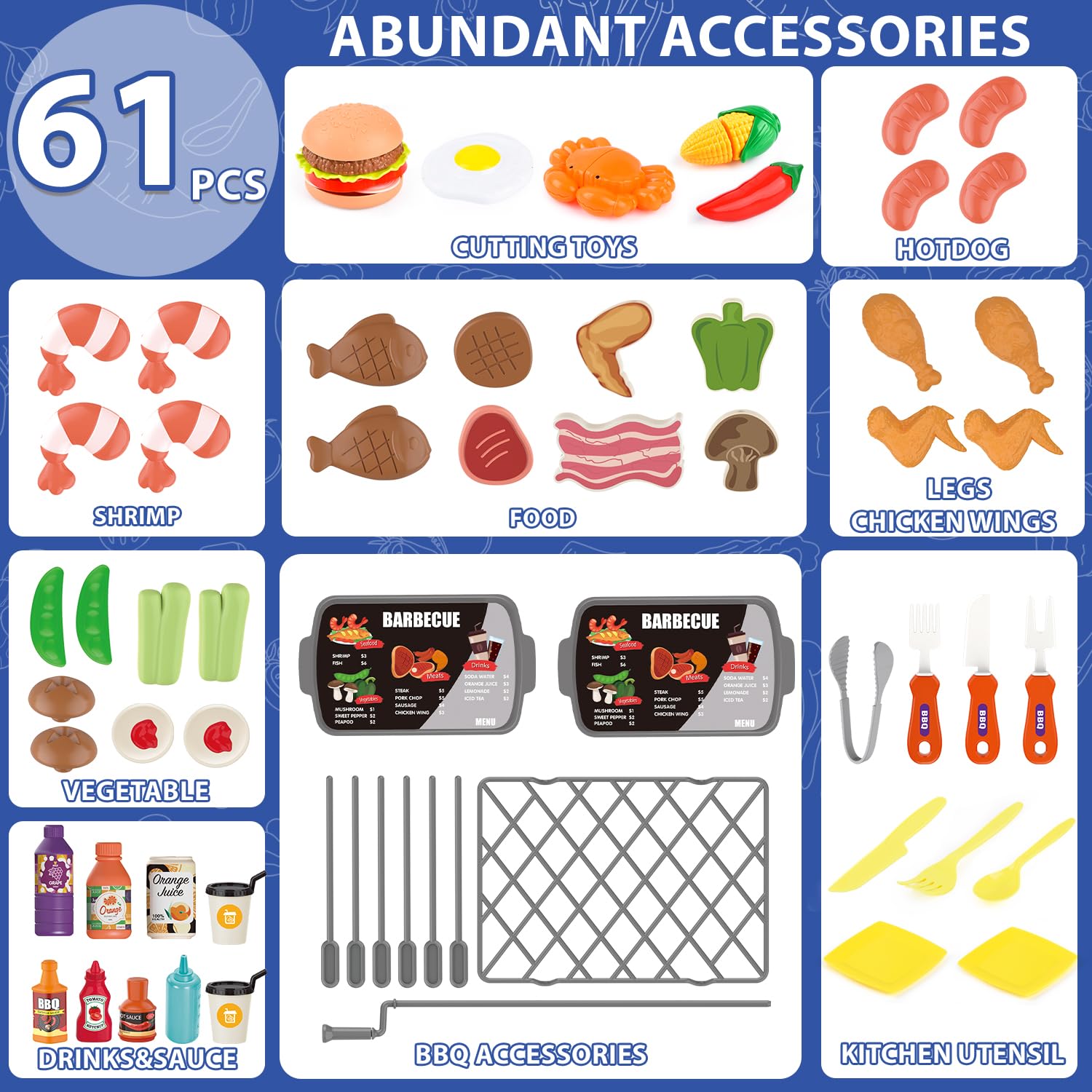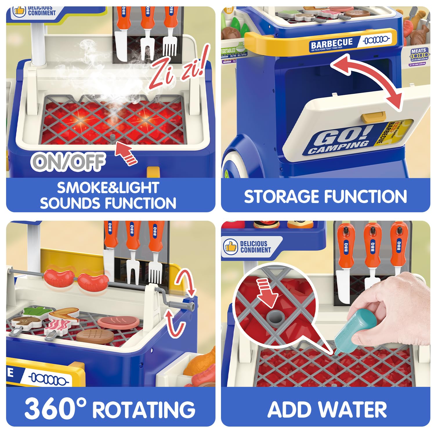 Kitchen Toys Playset,Kids Barbecue Grill Toy Set with Smoke, Sound& Light, Pretend Play Food BBQ Drill Cooking Game Toys,Indoor&