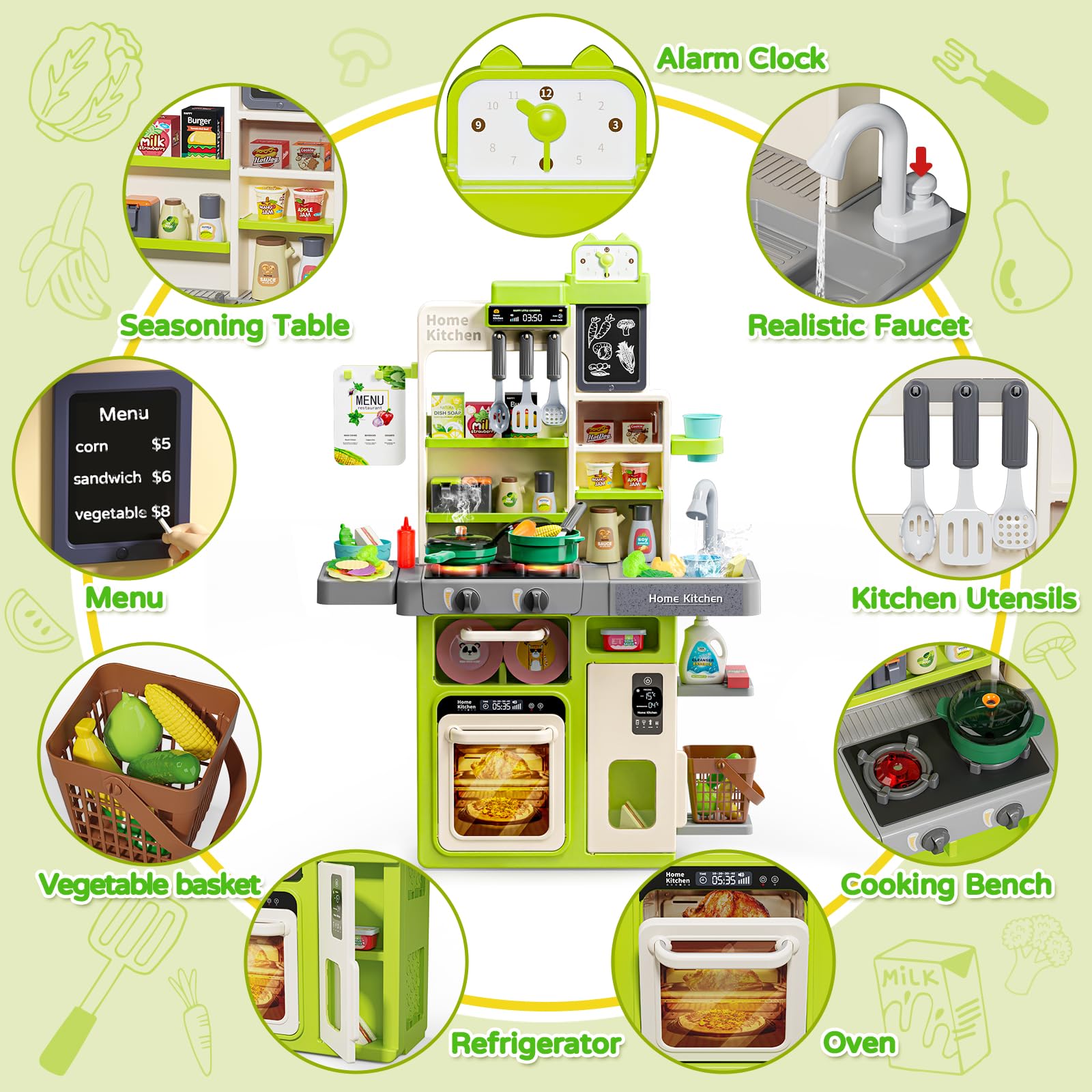 - Q: Does the kitchen playset include realistic sound and light features? A: Yes, the kitchen playset features an electric stove with lights and realistic cooking sounds, providing an immersive cooking experience that enhances imaginative play.