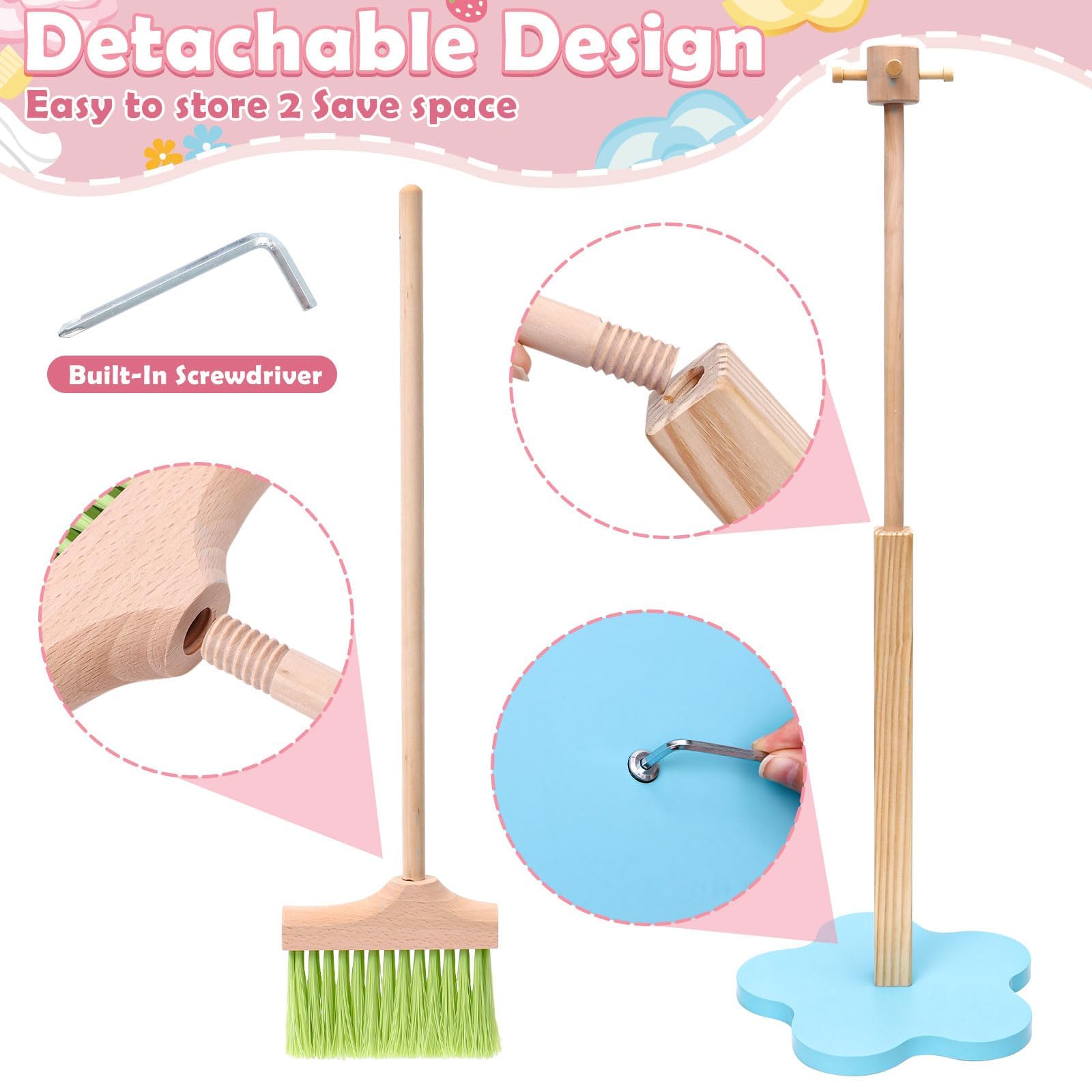 View compareLonico Wooden Kids Cleaning Toy Set For Toddlers Mop Broom And Dustpan Set, 12 Pcs Detachable Housekeeping Playset With Bucket D