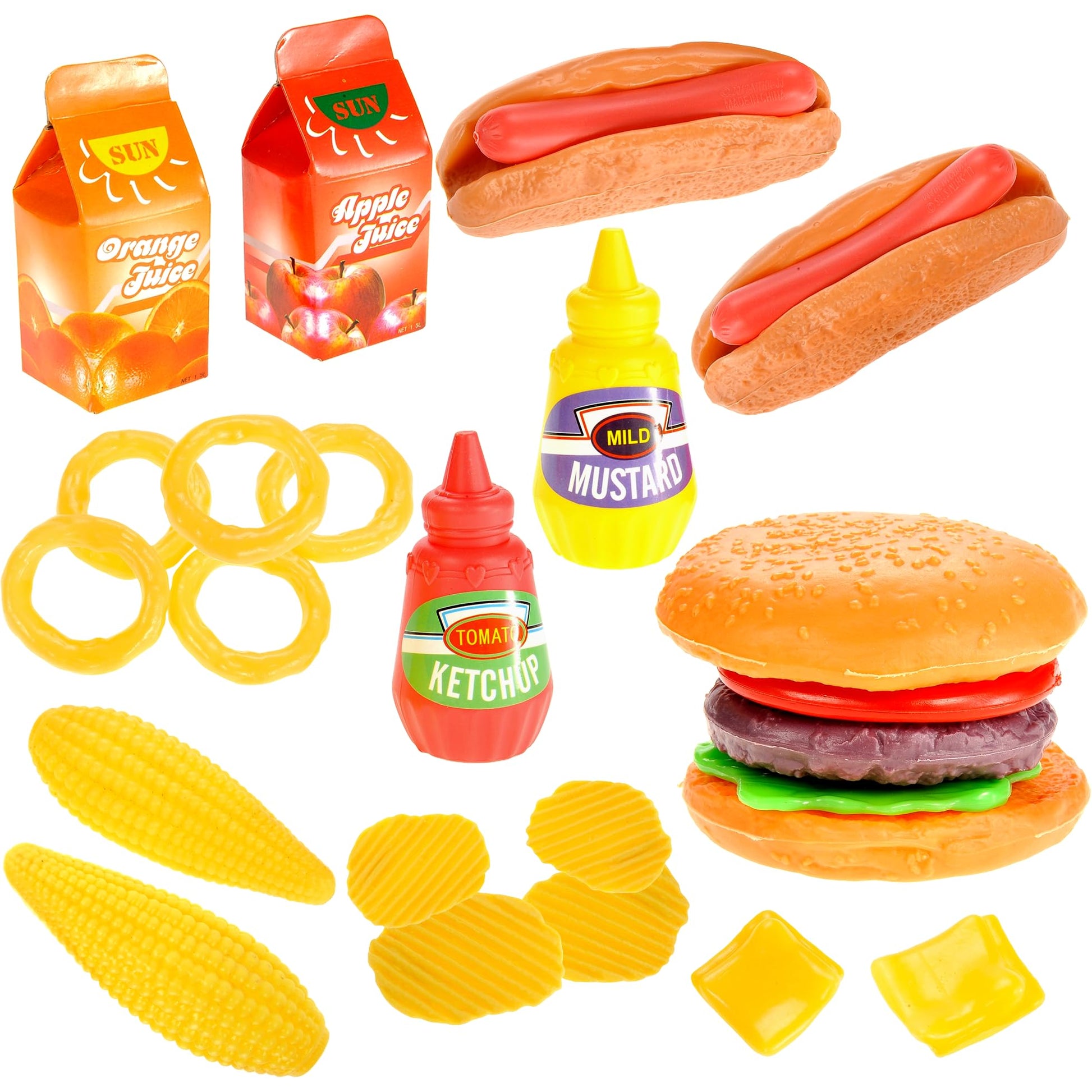 PowerTRC 26 Pc Deluxe Kids Fast Food Play Set - Pretend Burger, Hot Dog, Potato Chips, Onion Rings, Corn & More, Cooking Play Se