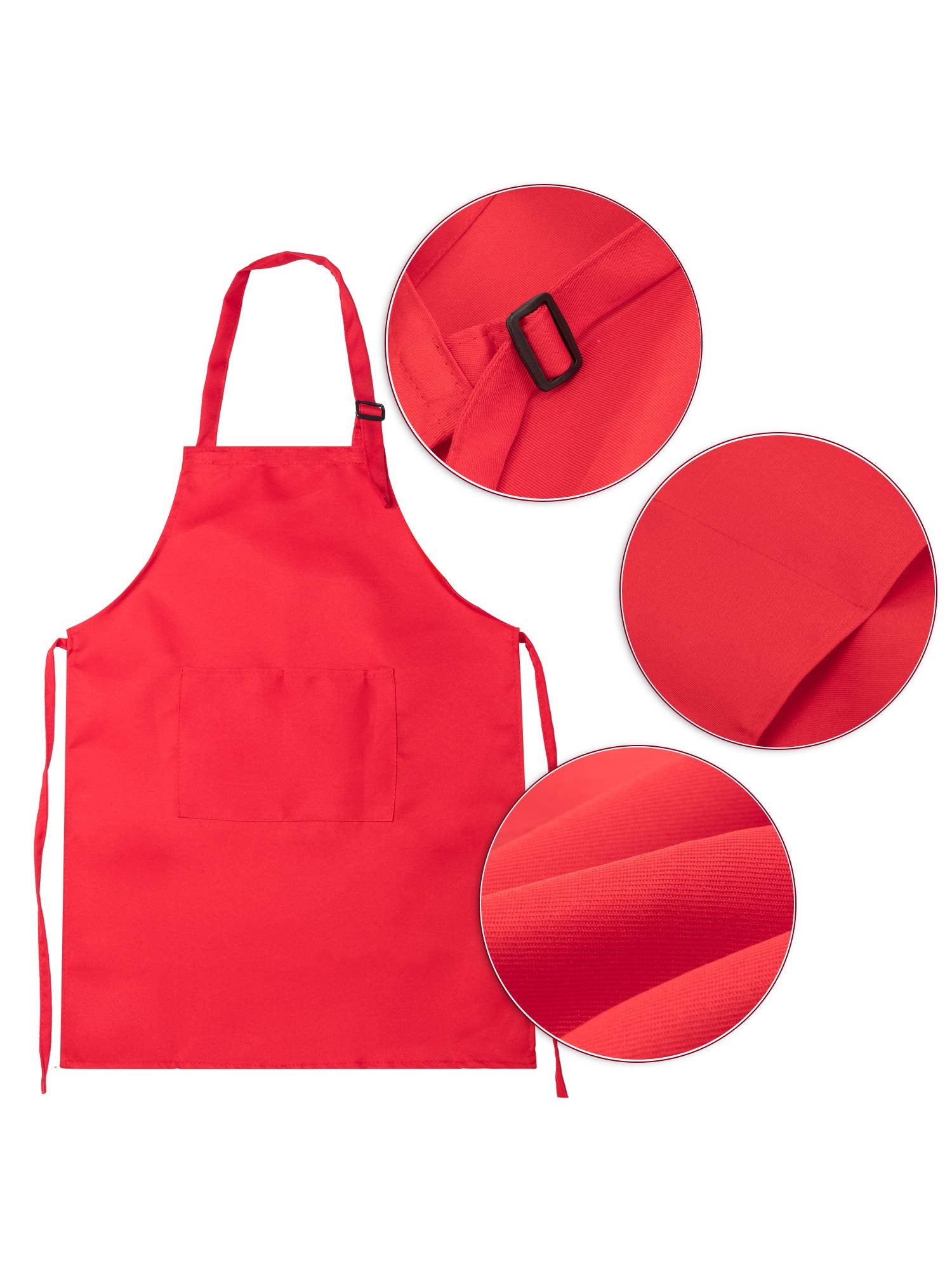 SATINIOR 8 Set Kids Apron and Chef Hat Set Kids Apron with 2 Pockets Adjustable for Boys Girl's Cooking Baking Painting