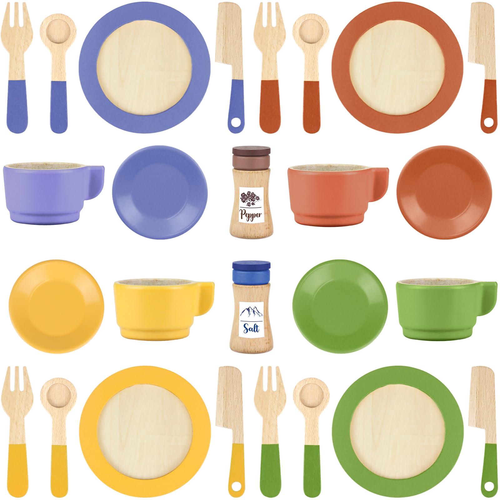 Material: WoodBeberolen Play Kitchen Accessories Dishes and Plates Set for Toddlers A Pretend Play Kitchen Accessories that stimulates learning through experiments, learning to manipulate everyday objects help children develop their fine motor skills. Great gift for boys and girls