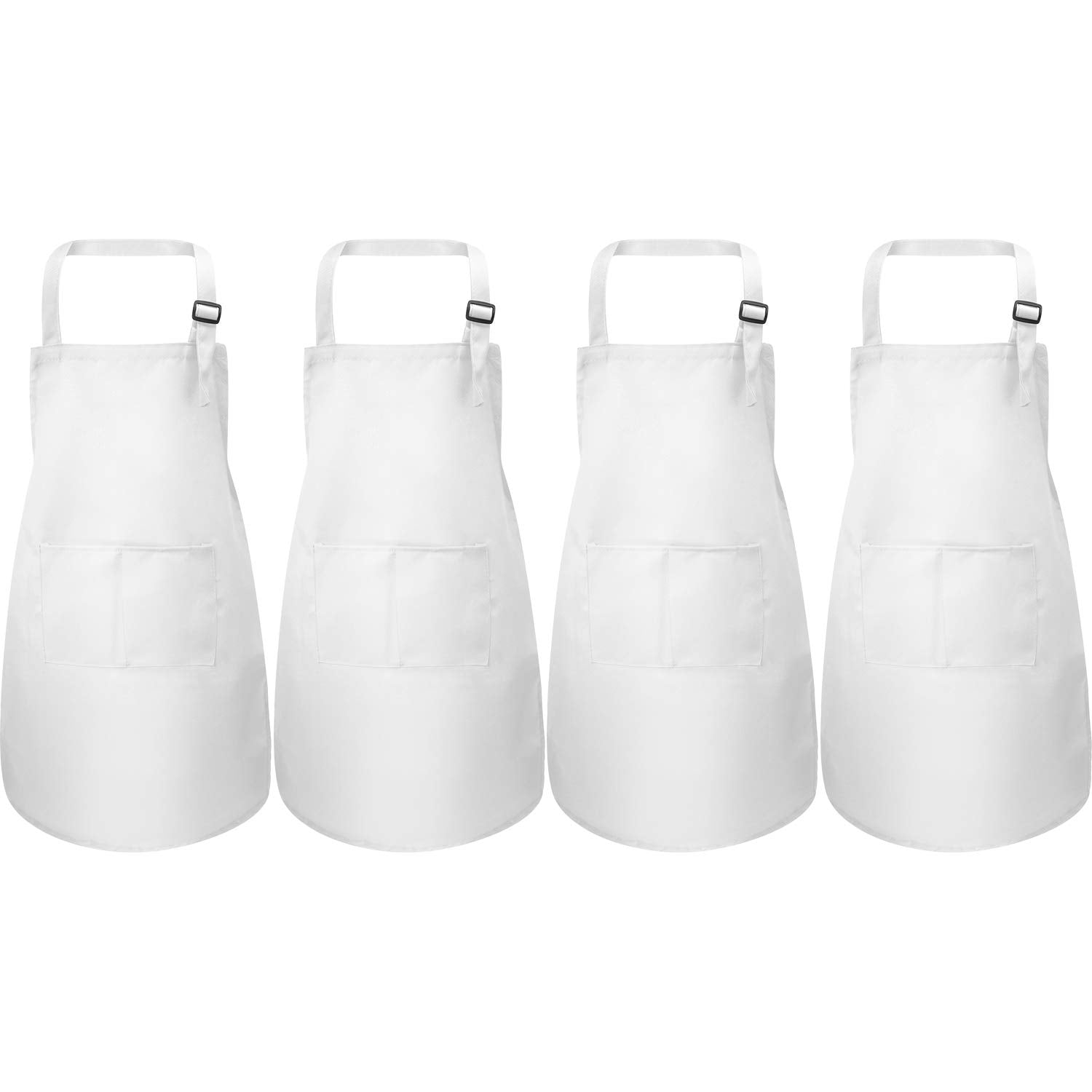 Yaomiao 4 Pieces Kids Apron With Pocket Children Adjustable Chef Apron For Cooking Baking Painting (White,M For 7-13 Age)