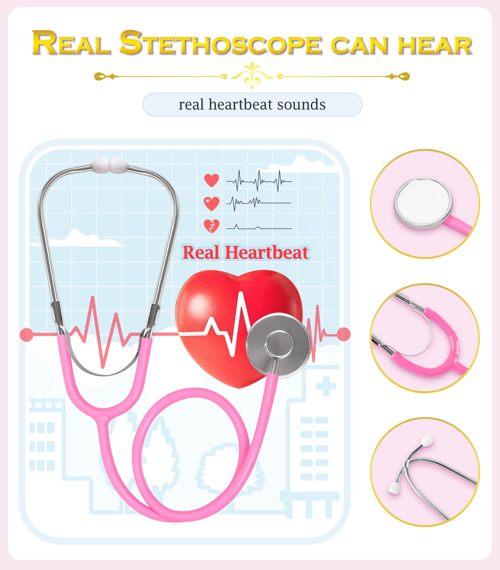 Doctor Costume for Kids Scrubs for Girls Boys, BIBUTY Pretend Play & Dress Up Clothes for Kids, Halloween Costumes for Girls Doctor Kit for Kids with Accessories, Toy Gift for 5-8 Toddler Little Kids