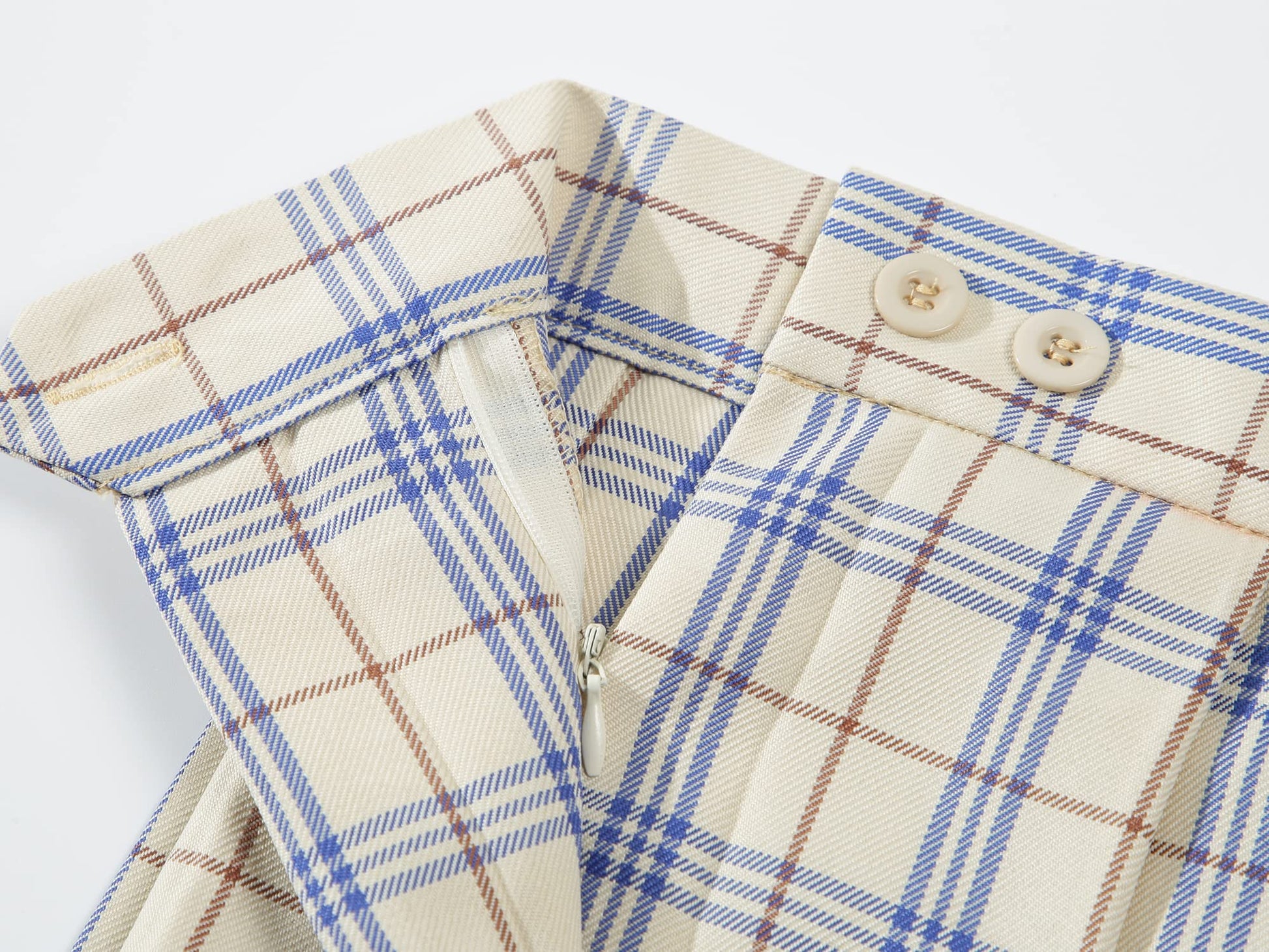 Girlss Short Pleated Plaid Costumes Skirt(Beige Dark Brown Mixed Blue,Medium)