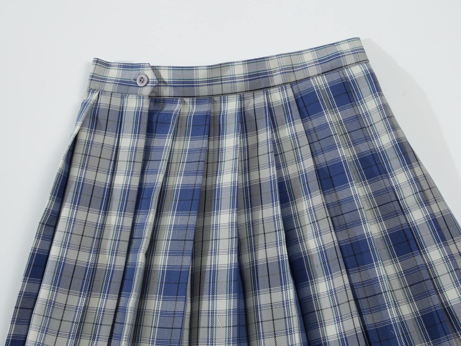 Girlss Short Pleated Plaid Costumes Skirt(Blue White Mixed Light Blue,Medium)