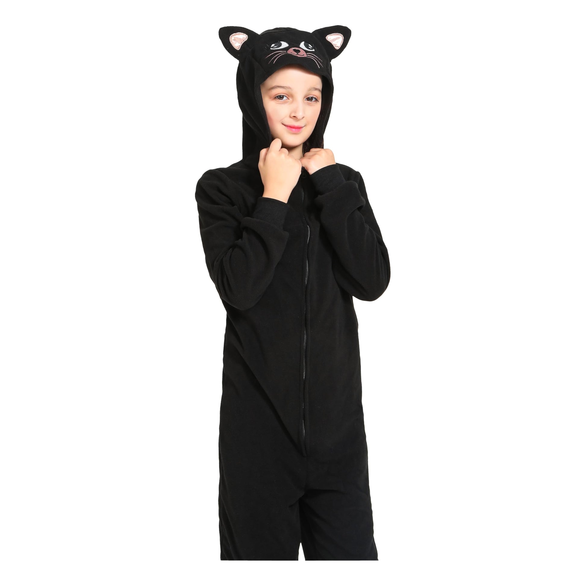 Leadtex Child Black Cat Costumes Zipper Cartoon Cat Onesie Pajamas Costume Halloween Cosplay Jumpsuit For Kids,S4-6
