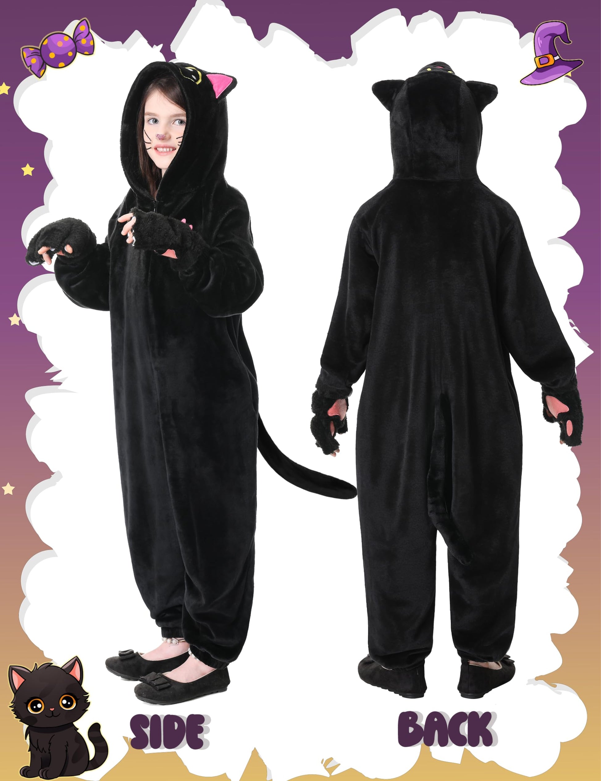 Resiwai Cat Costume For Girls Kids Animal Costume Unisex Black Cat Onesie Plush Animal Jumpsuit Halloween Costumes For Kids