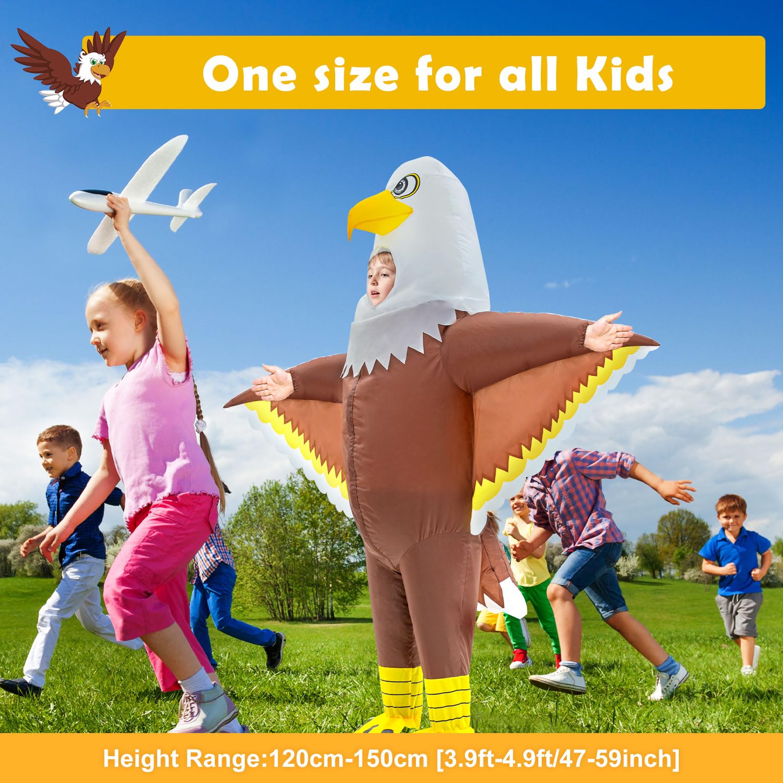 - Q: What sizes does the Eagle Inflatable Costume fit? A: The Eagle Inflatable Costume is designed to fit all kids between 120cm to 150cm tall (approximately 3.9ft to 4.9ft), making it suitable for both boys and girls.