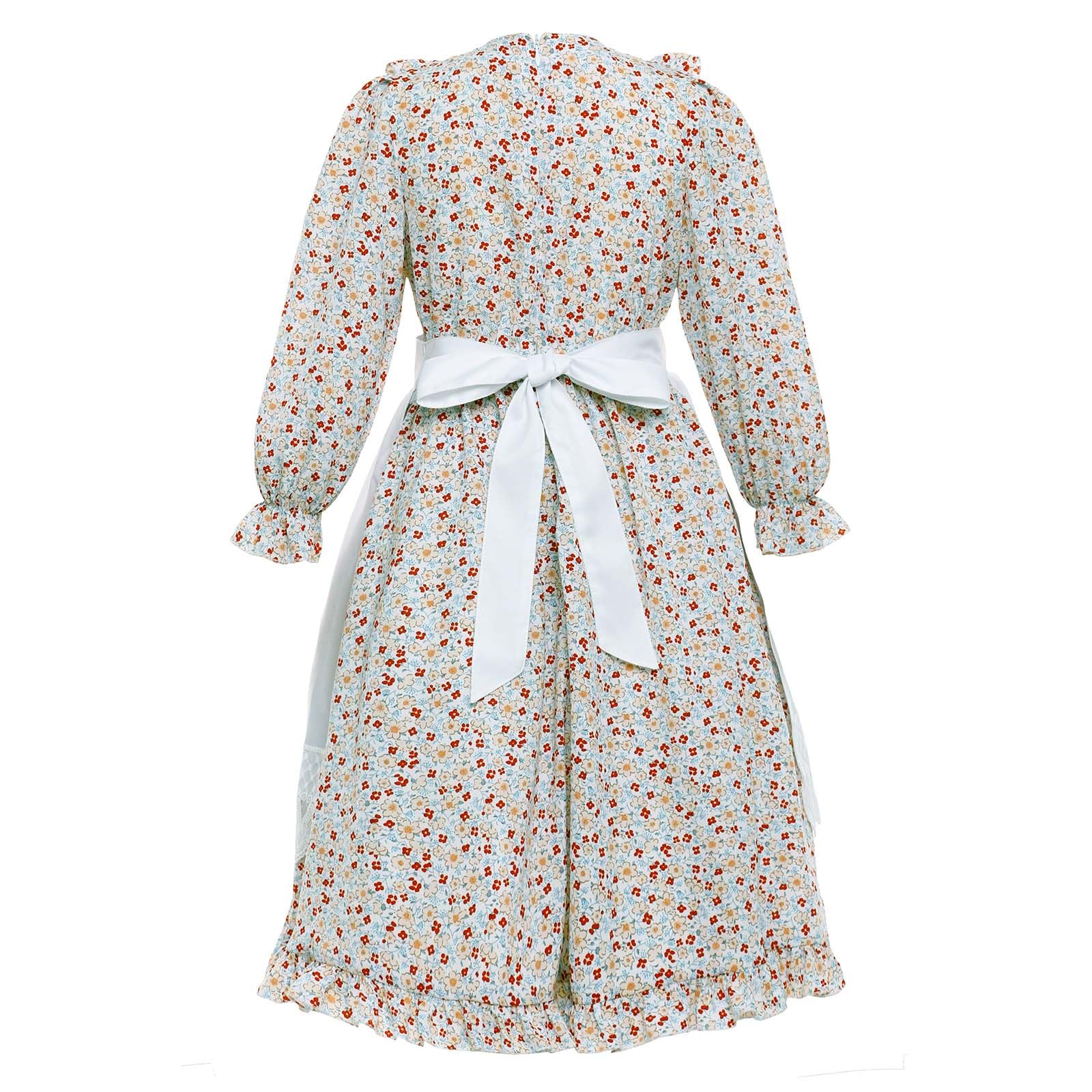 Vibsion Girls Pioneer Prairie Costume Pilgrim Dress Kids Floral Colonial Village Girl Costumes Bonnet Apron Set 3Pcs XL