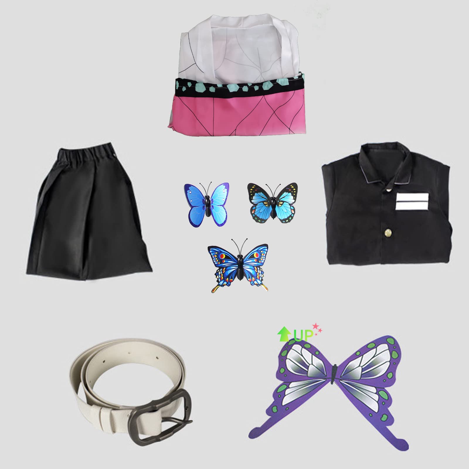 - Q: What accessories are included with the costume? A: The costume includes a white kimono-style cloak, black top, pants, two leg wraps, a white belt, a butterfly headdress, and three decorative butterflies, enhancing the overall look and playability.