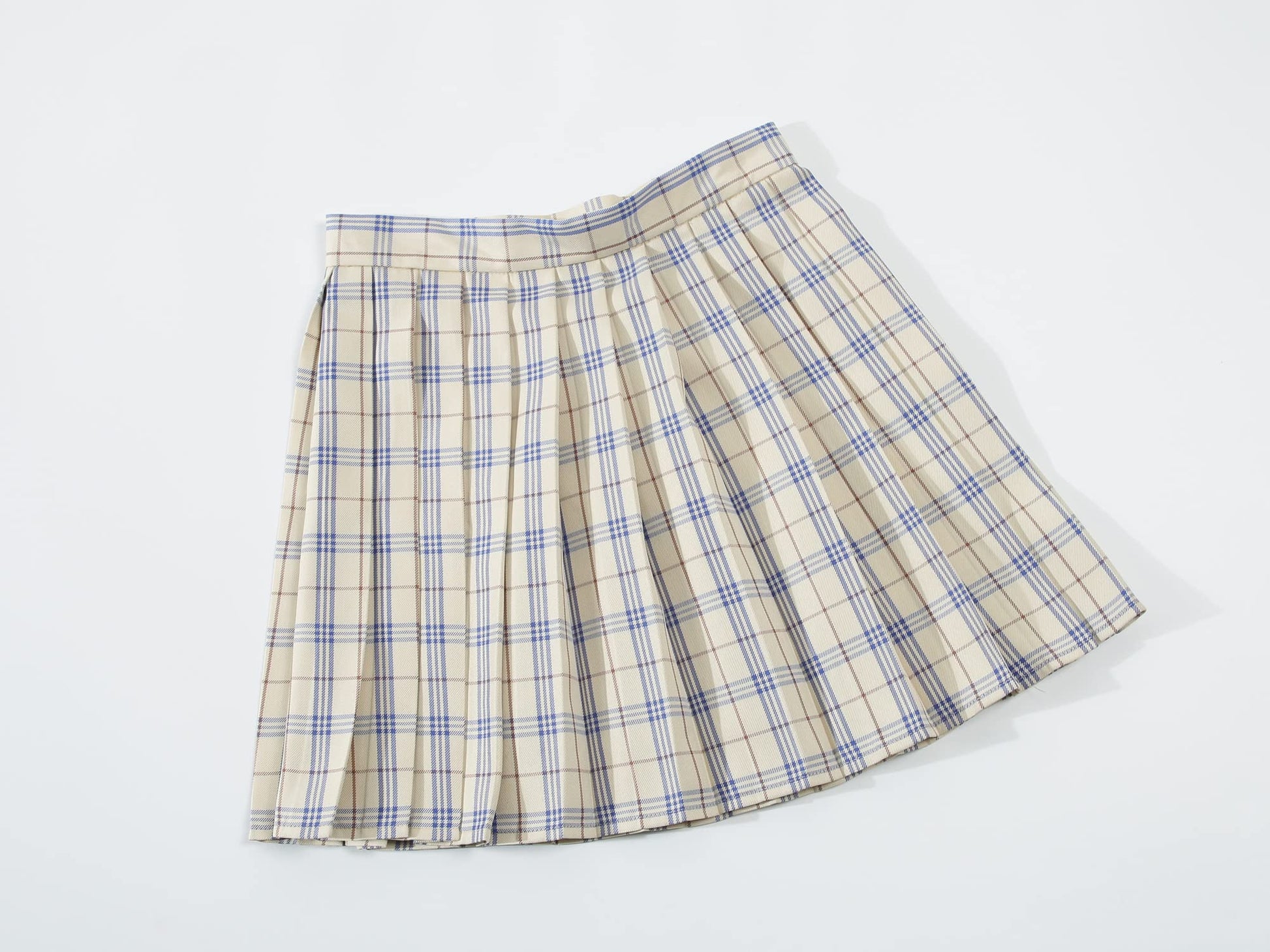 Womens Short Pleated Plaid Costumes Skirt(Beige Dark Brown Mixed Blue,3Xl)