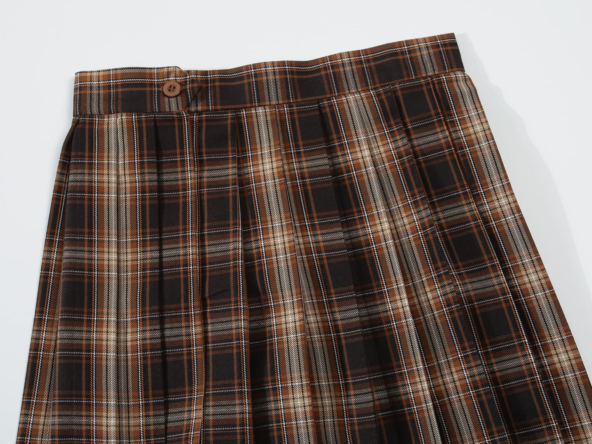 View compareWomens Short Pleated Plaid Costumes Skirt(Dark Brown Mixed White,4Xl)