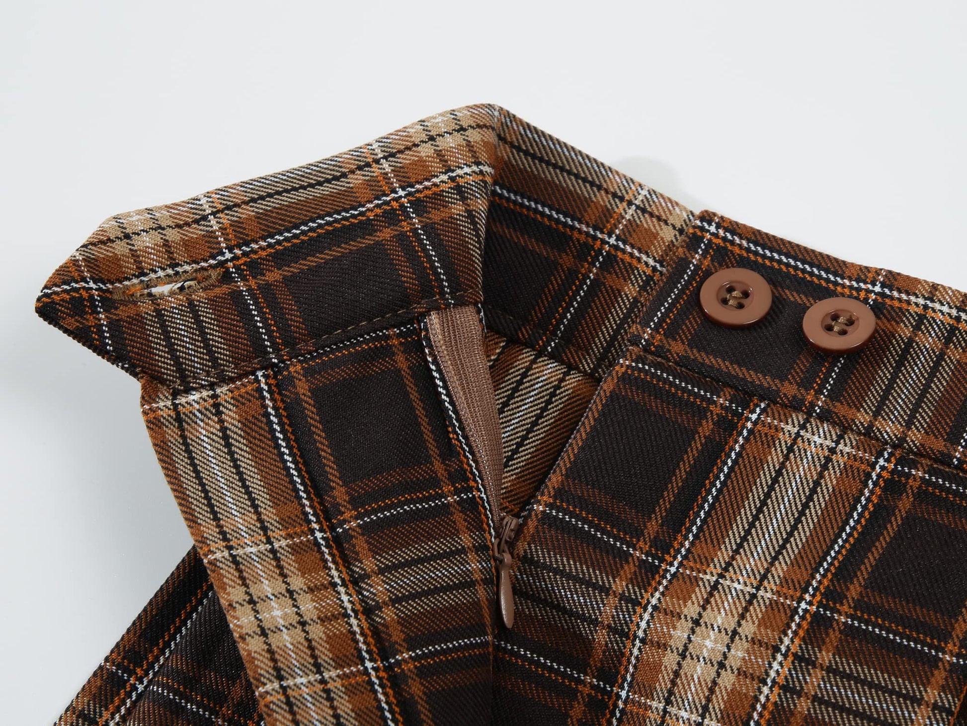 Womens Short Pleated Plaid Costumes Skirt(Dark Brown Mixed White,4Xl)
