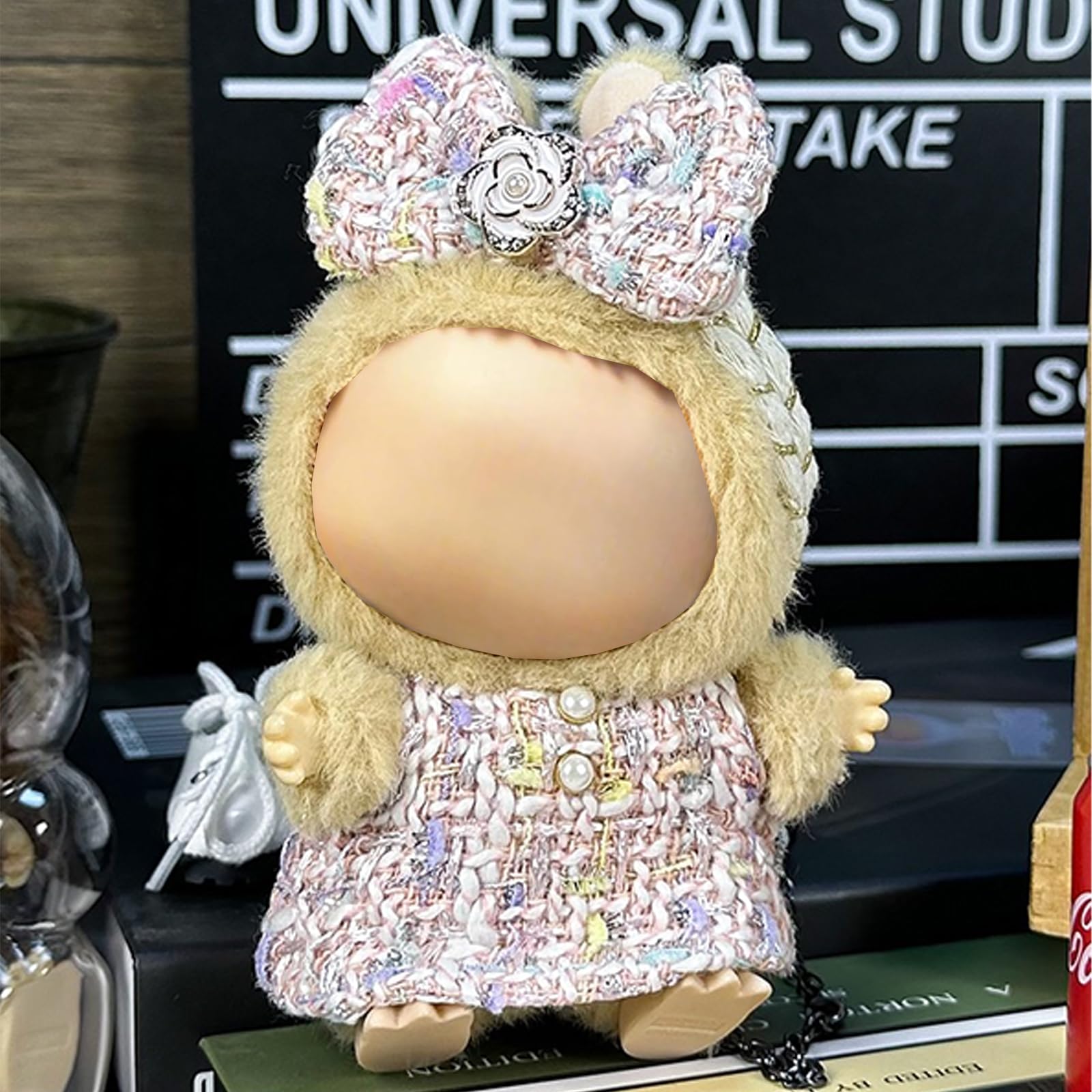 17cm Doll Clothes Set(NO Doll) - Cute Knit Sweater & Handcrafted Crochet Skirt Soft Stretch Fabric Costume Accessories Kawaii Bow Dresses Suit
