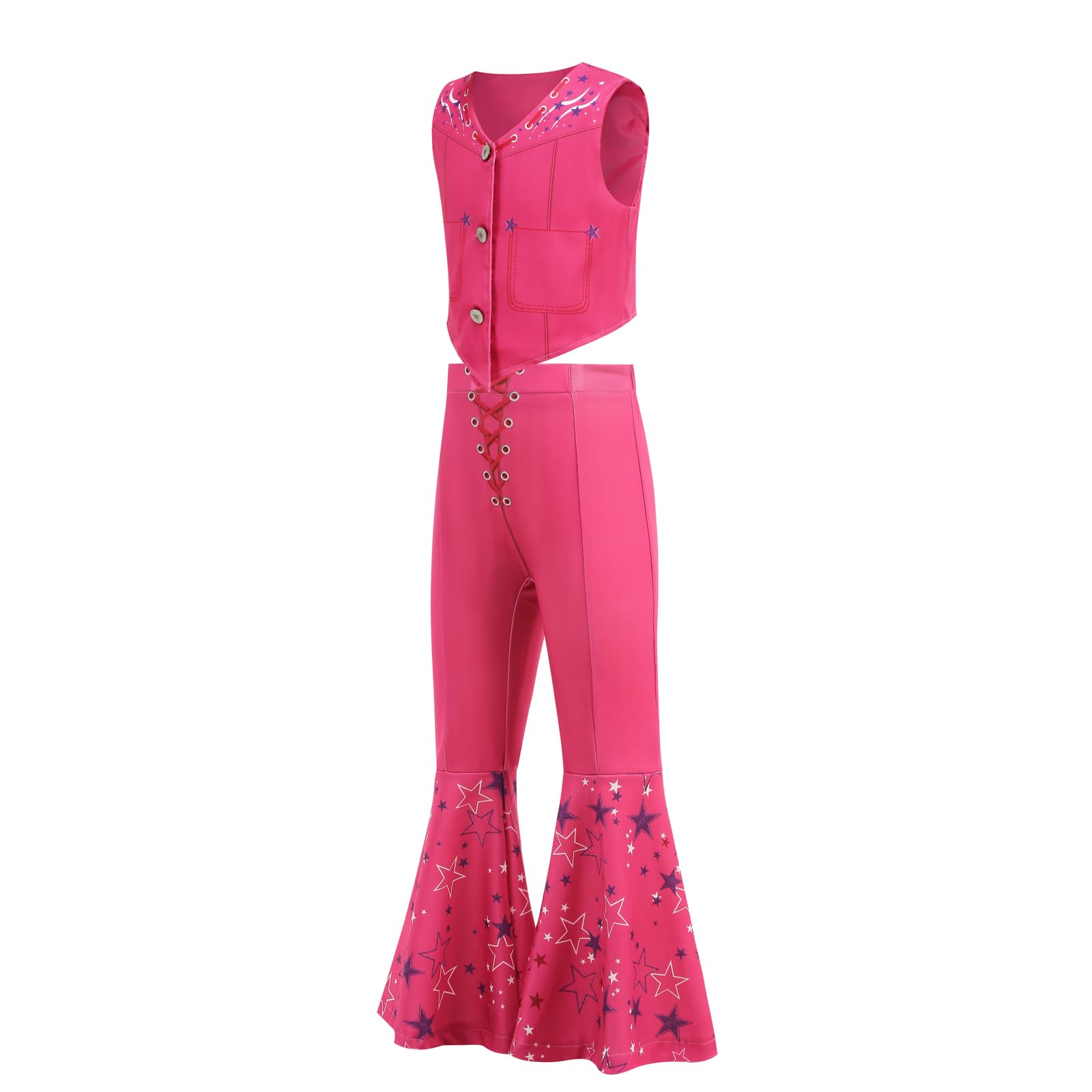ADDACOS Cowgirl Costume for Girls Halloween Dress up from Doll Movie with Accessories(Rose 120 (5-6T))