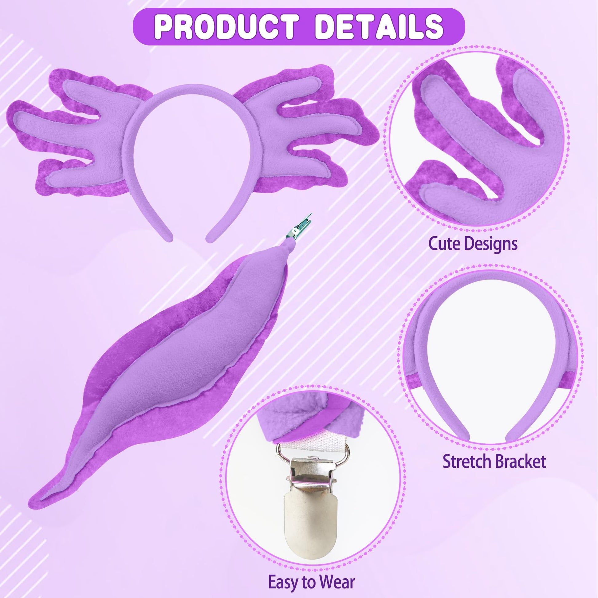 Alaxciax Axolotl Headband and Tail, Axolotl Costume Accessories Set Axolotl Gifts for Kids Girls Christmas Birthday Halloween (P