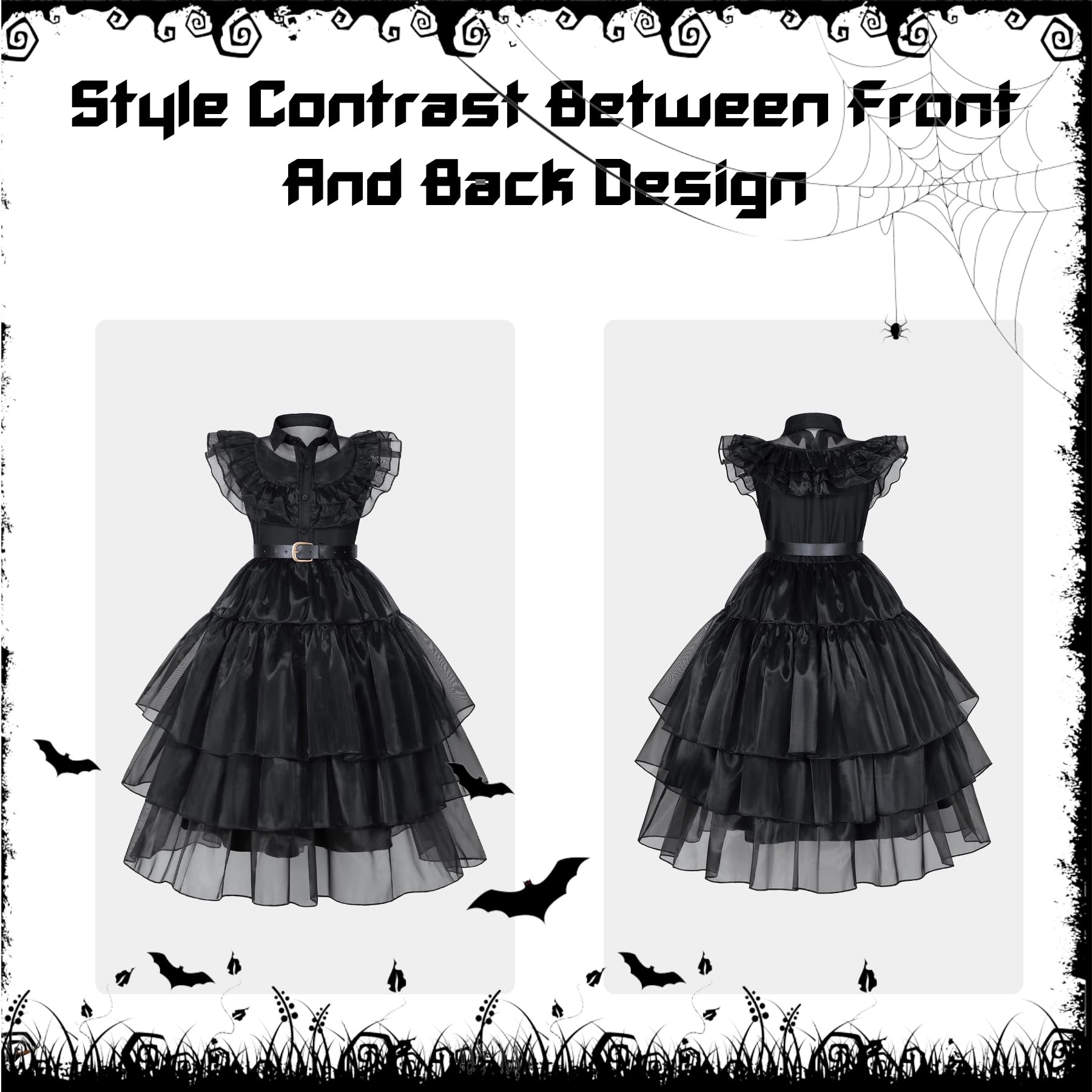 Black costume girls dress for Kids Black Dress Costume for Girls Halloween Cosplay Party (7-8 Years)